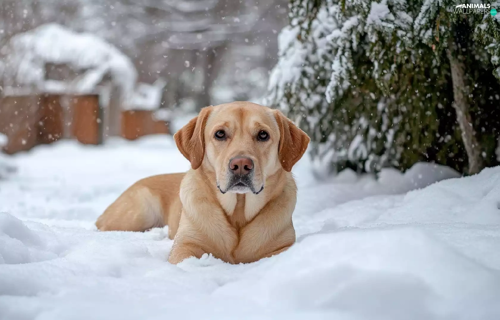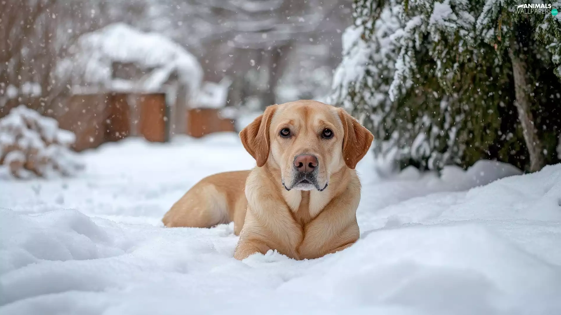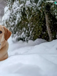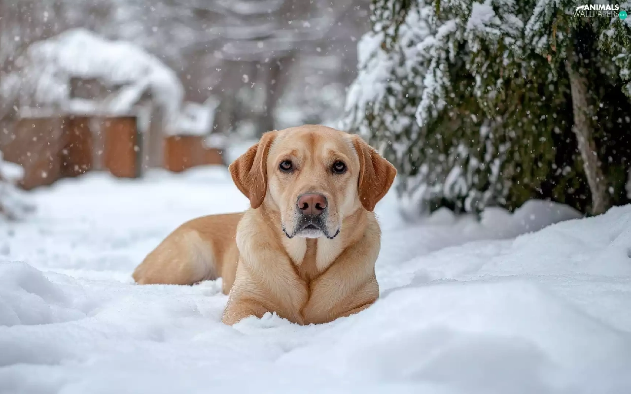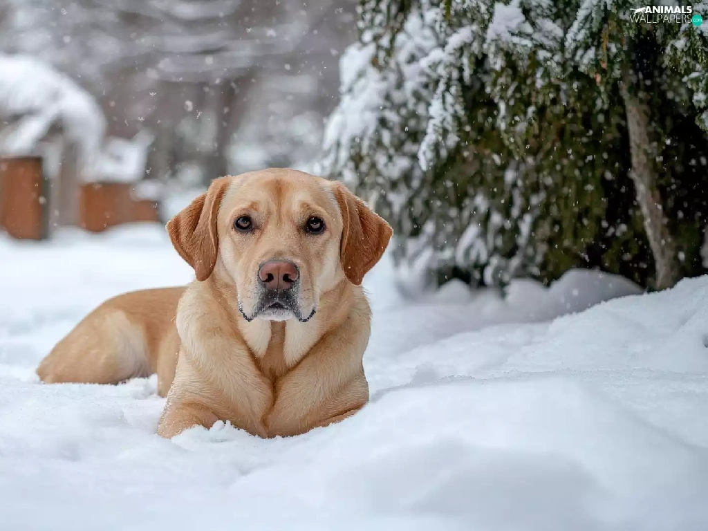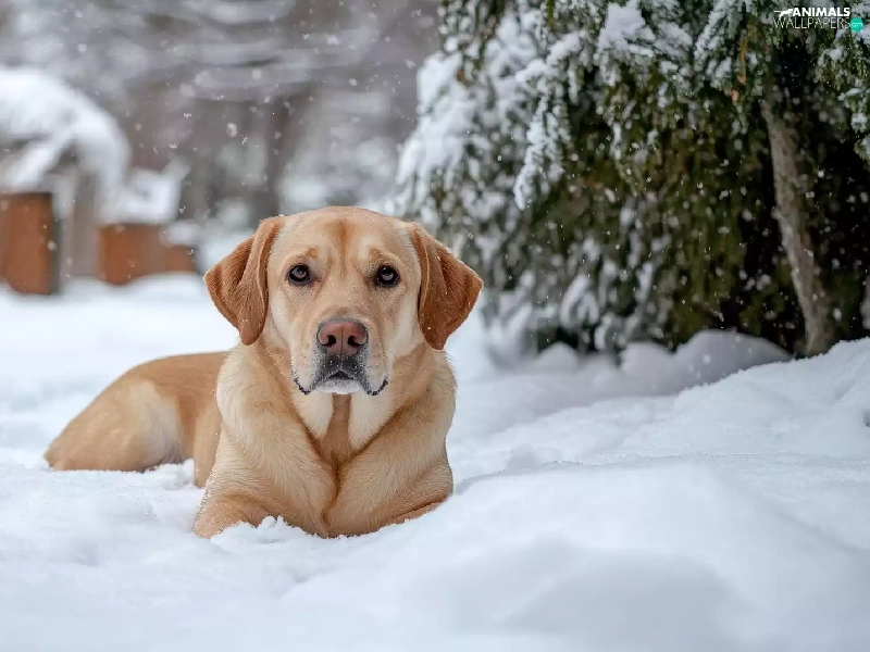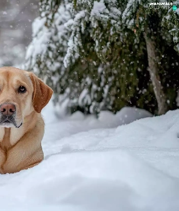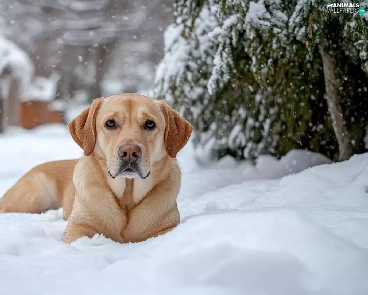 dog, winter, snow, Labrador Retriever