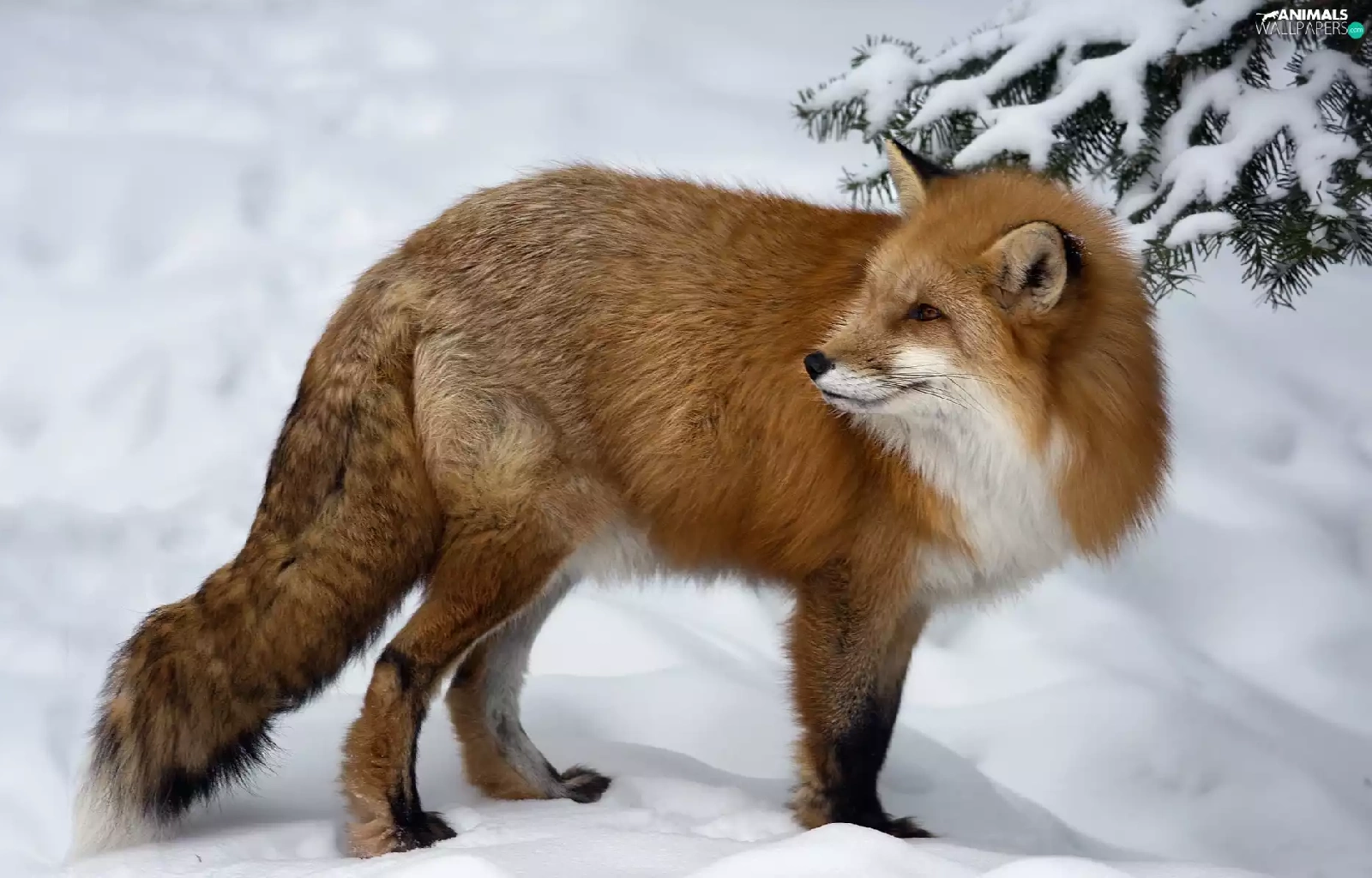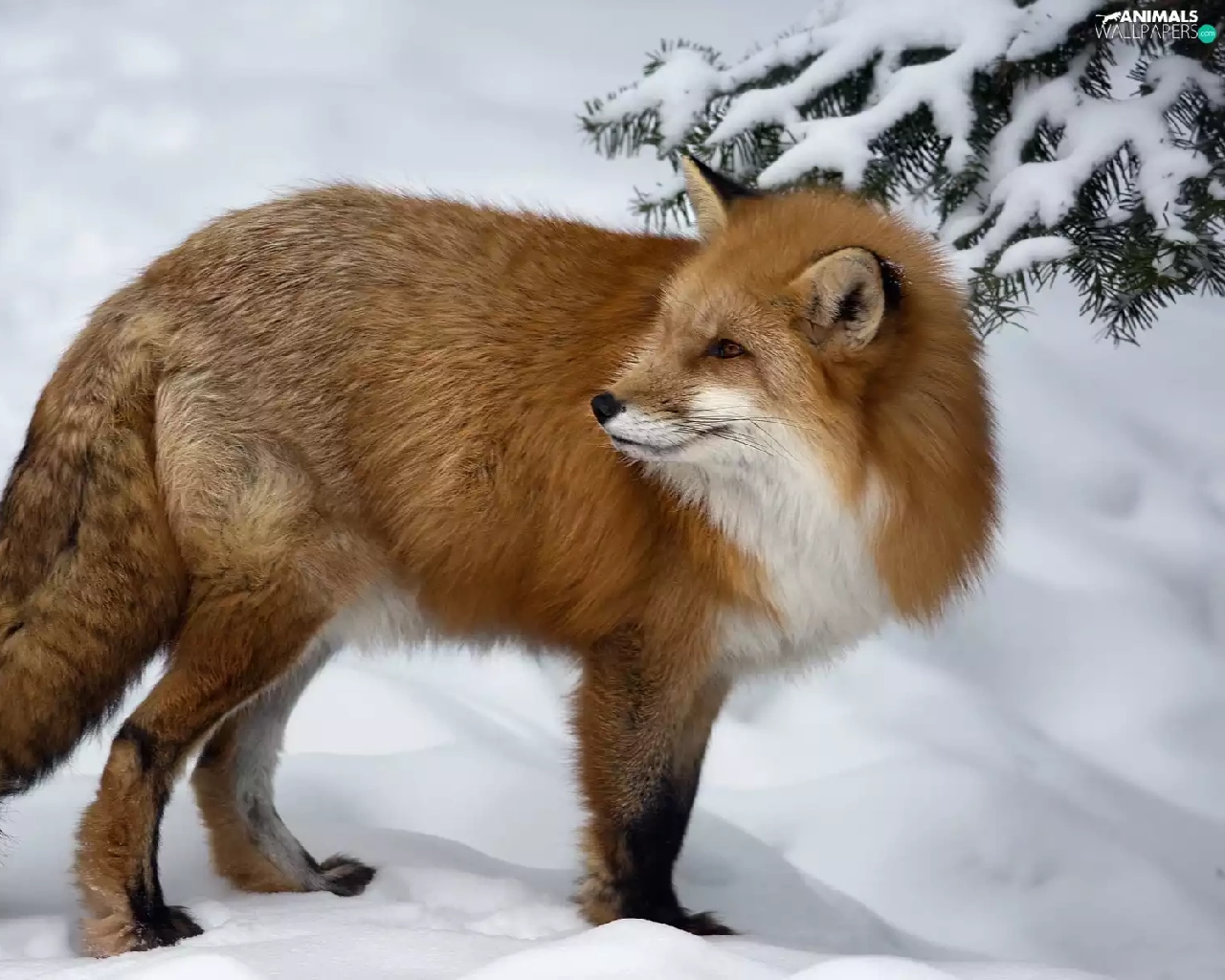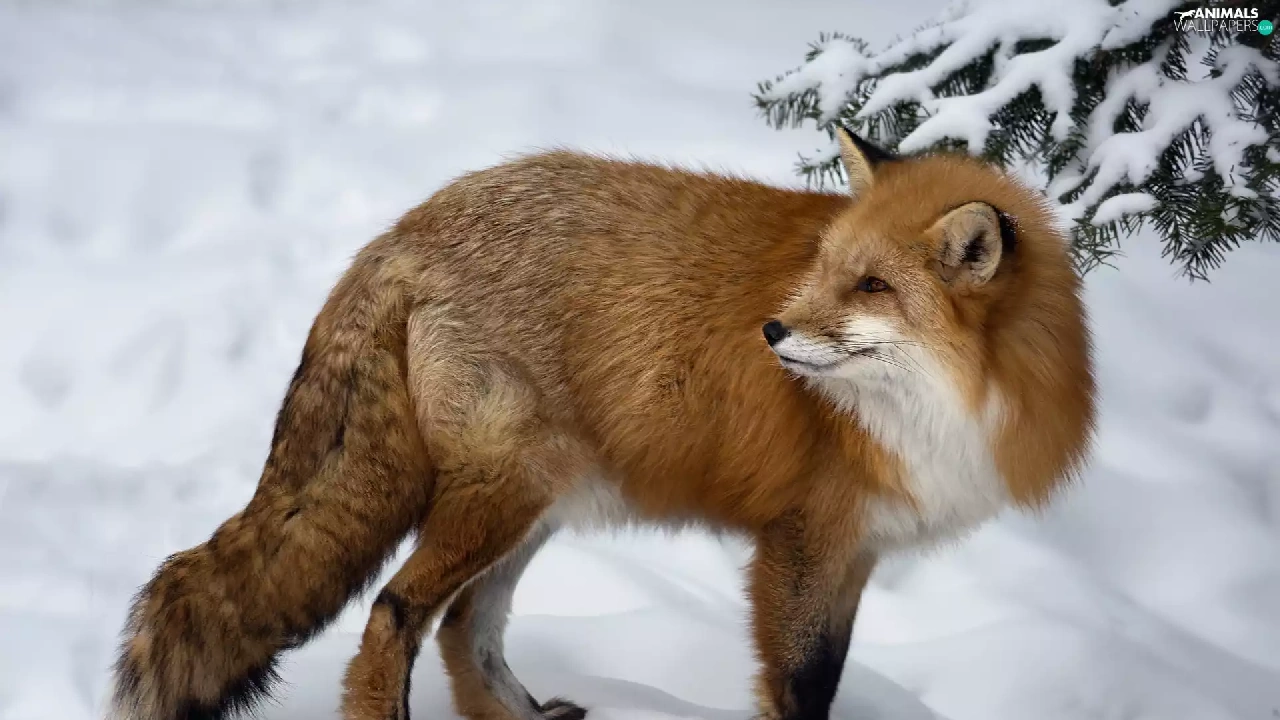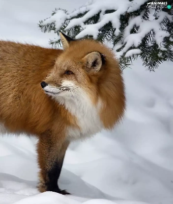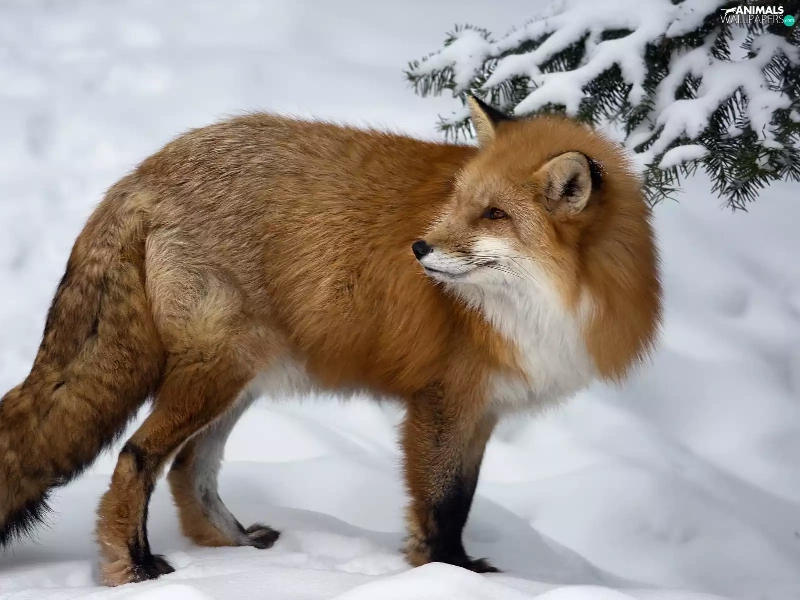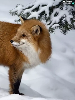 winter, Fox, spruce