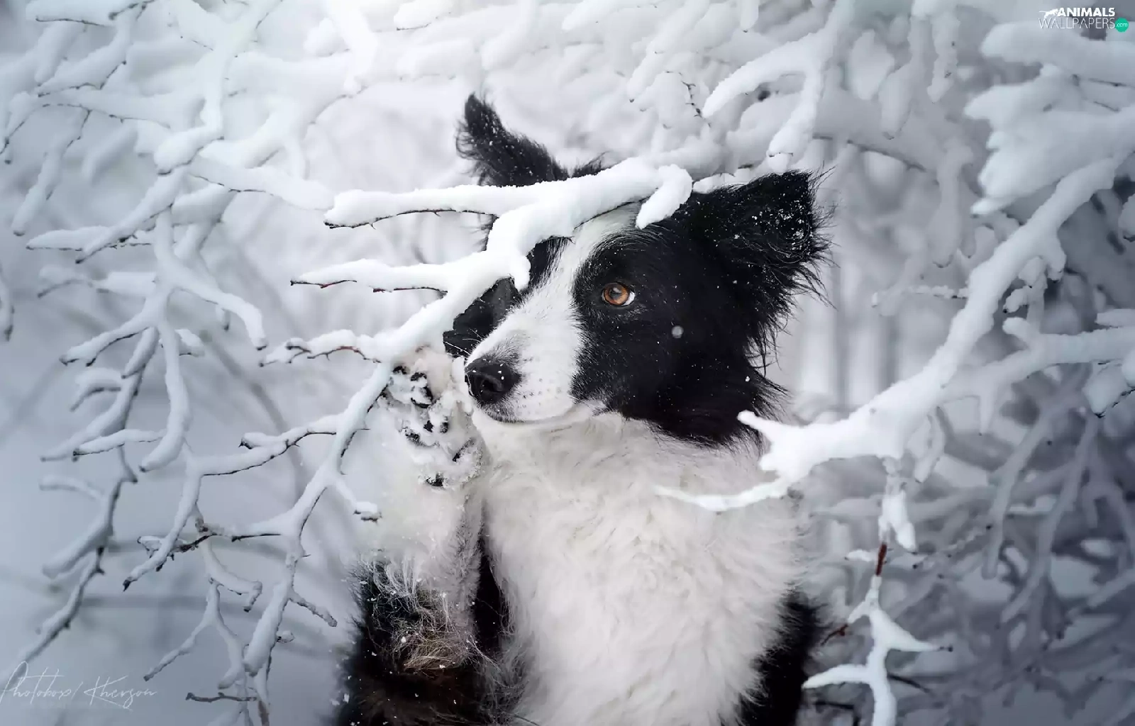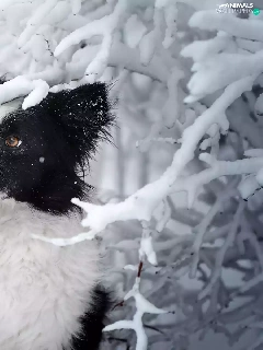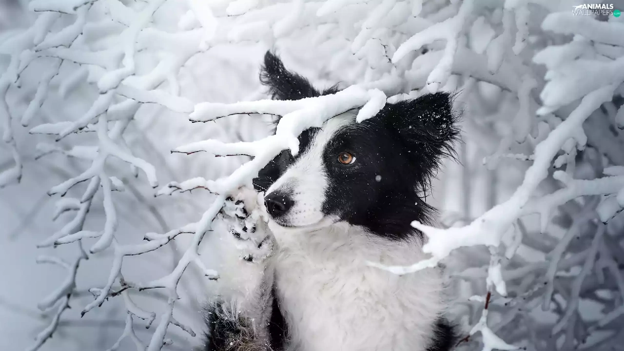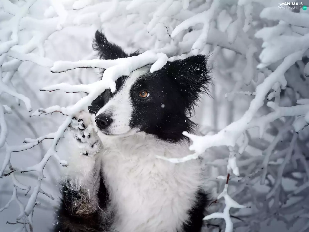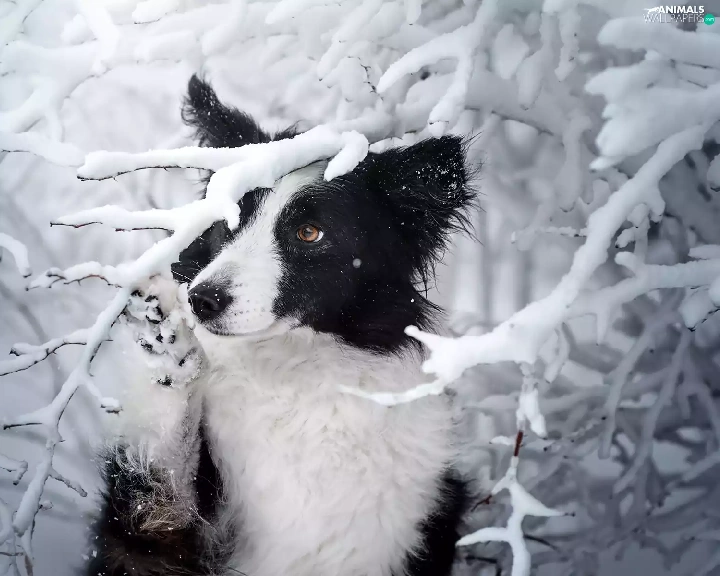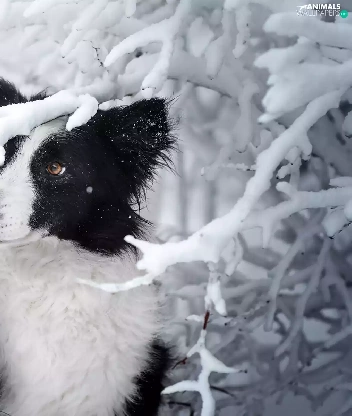Snowy, dog, viewes, winter, trees, Border Collie