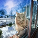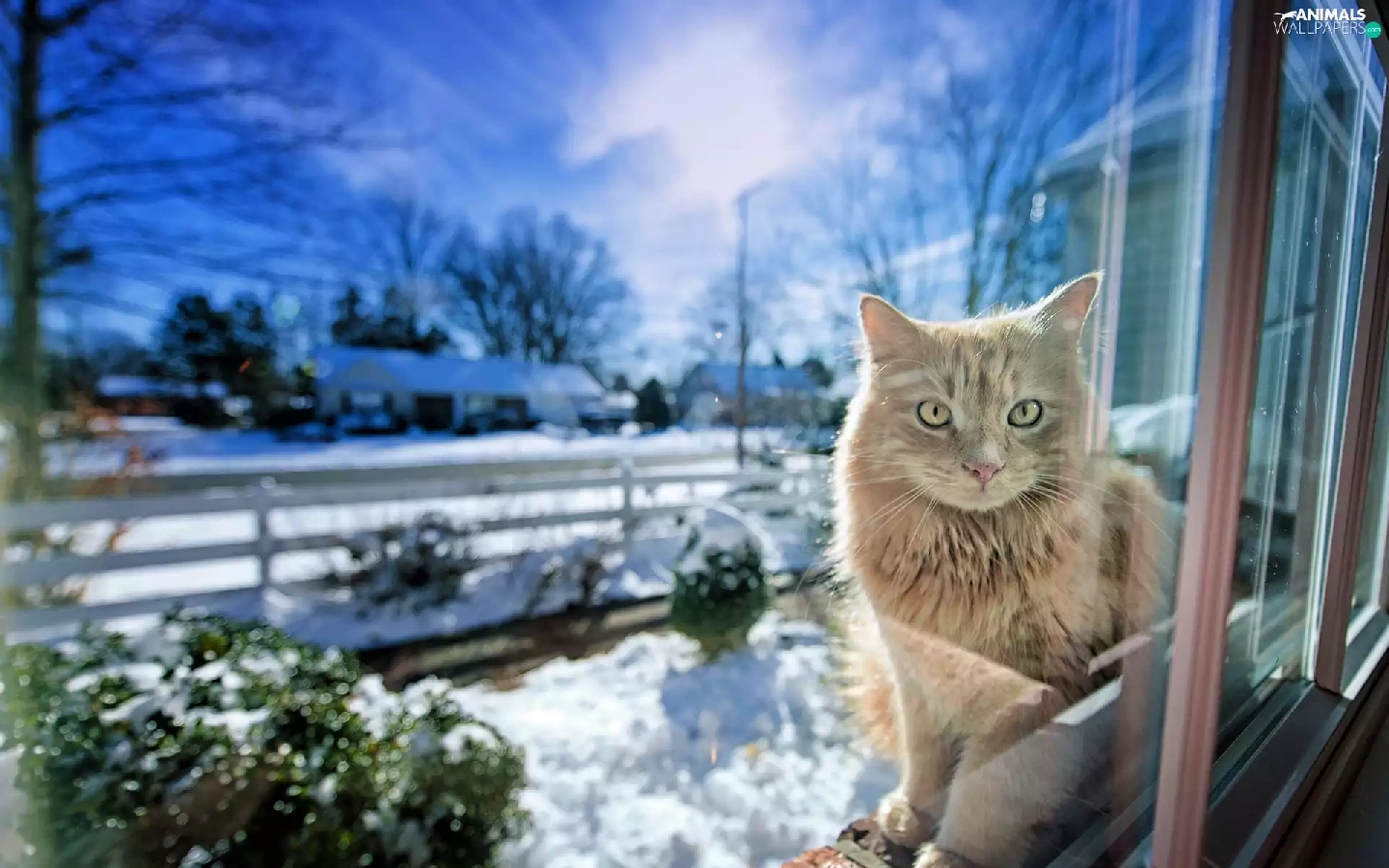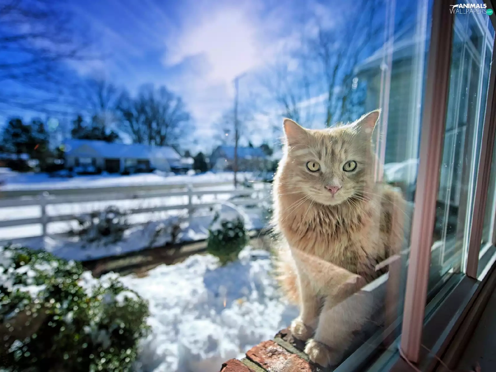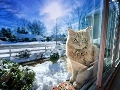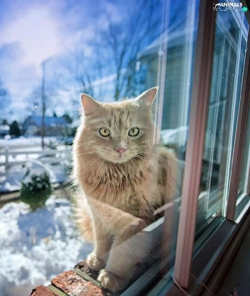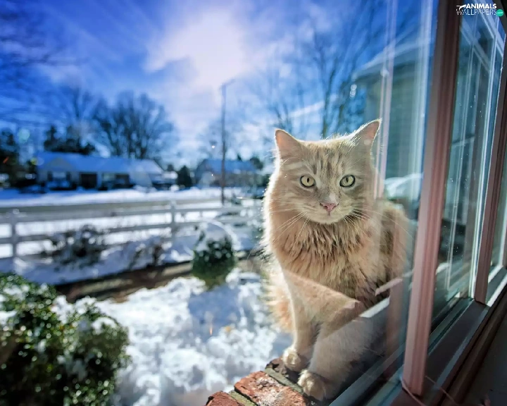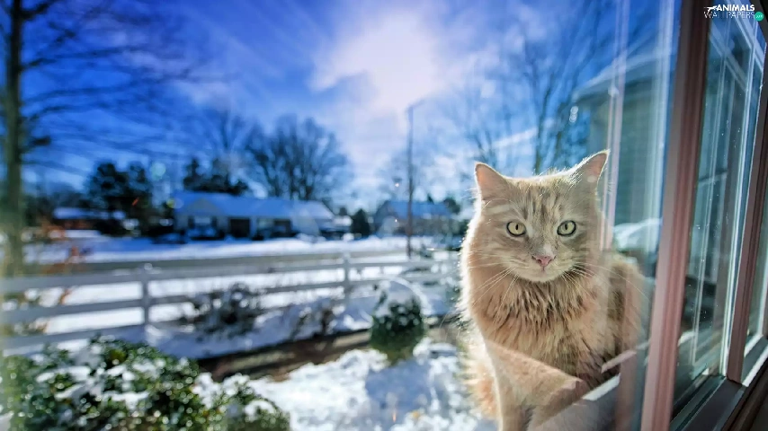 winter, cat, Window