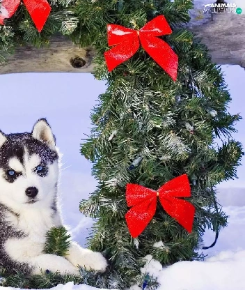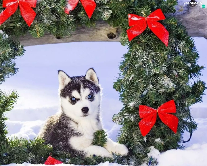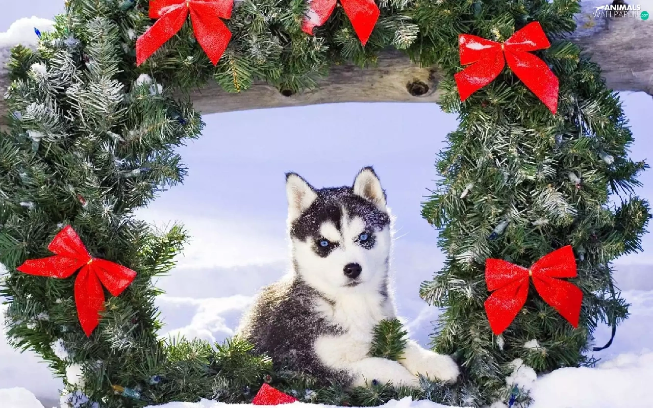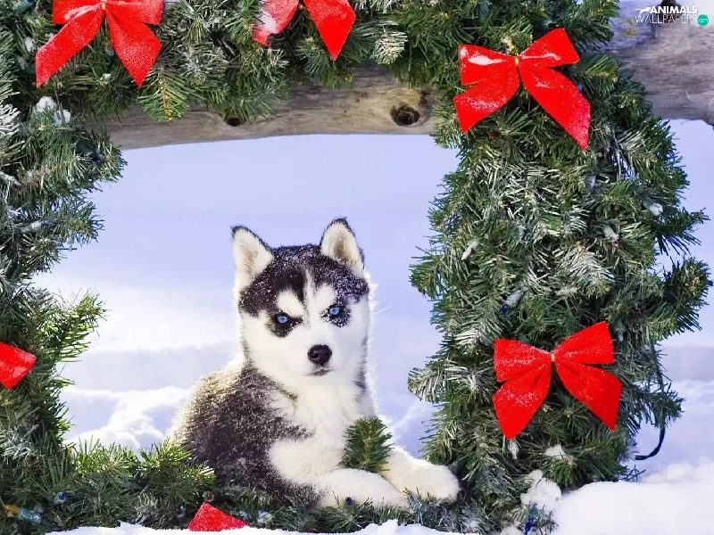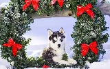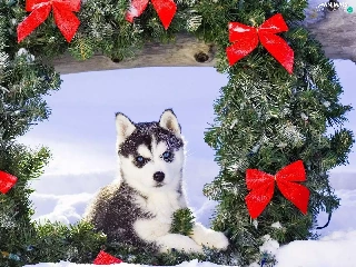 wreath, Siberian Husky, winter