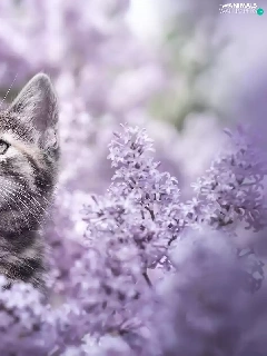 without, cat, Flowers
