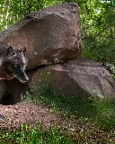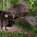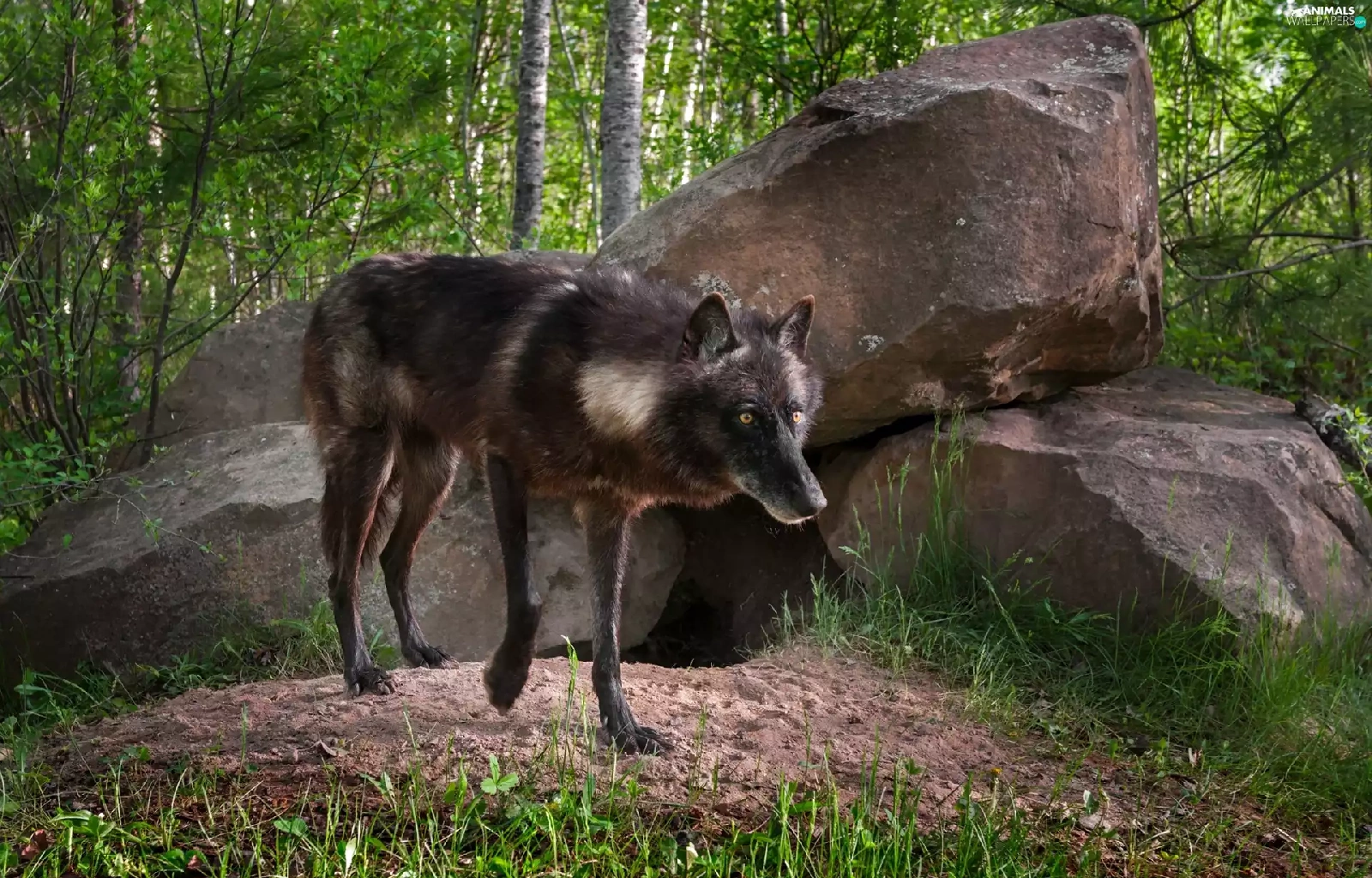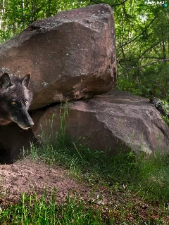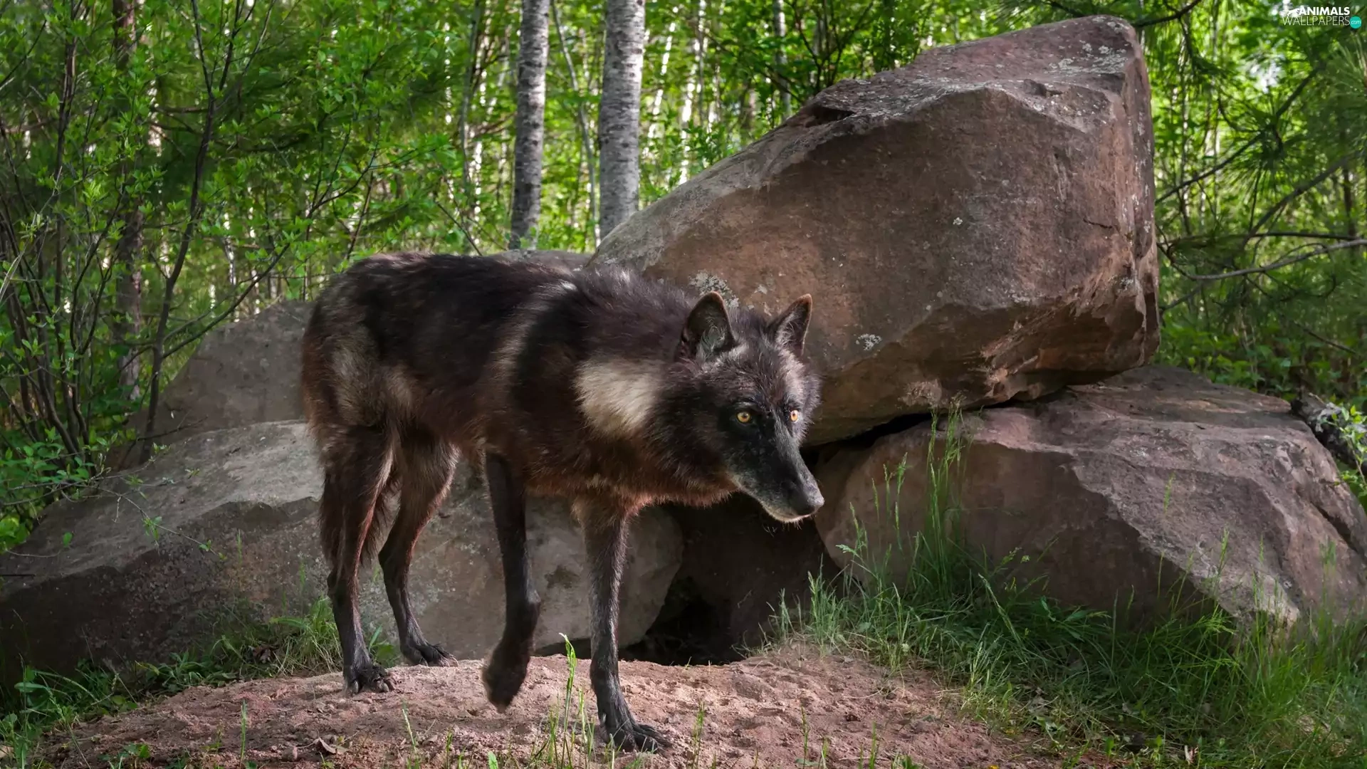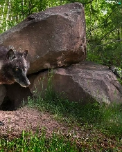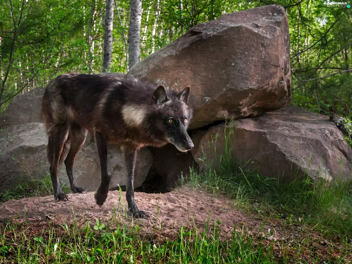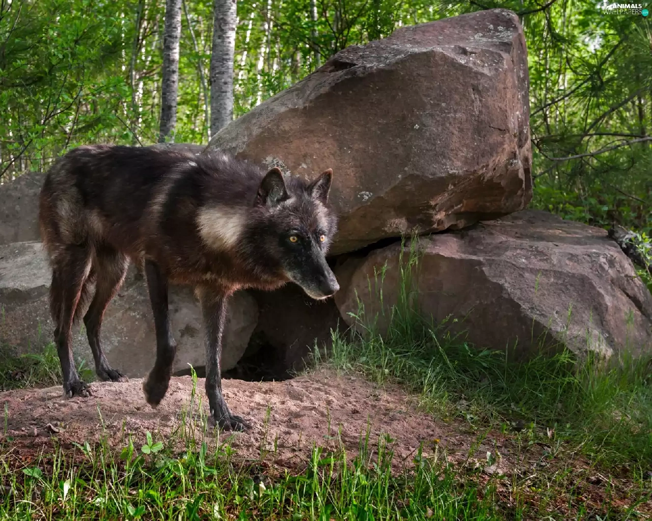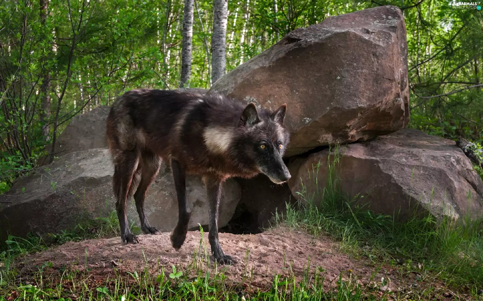 Black, forest, Stones, Wolf