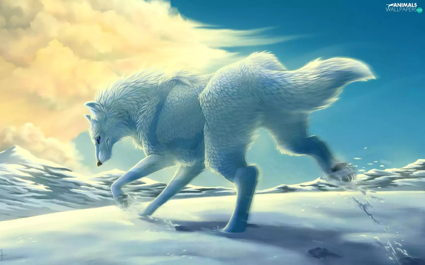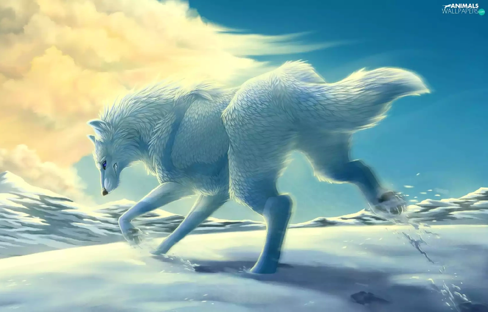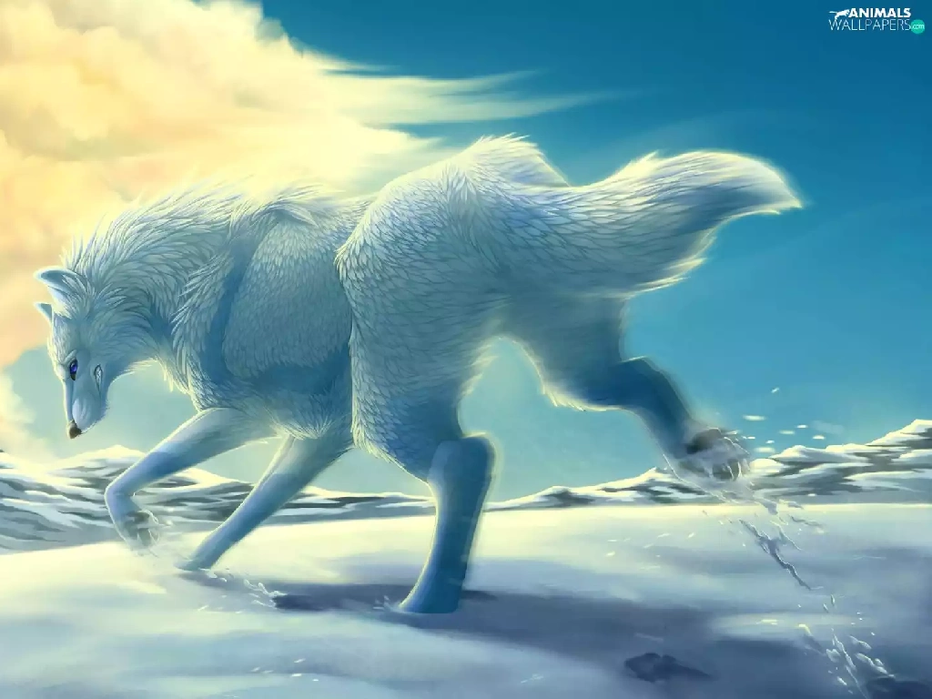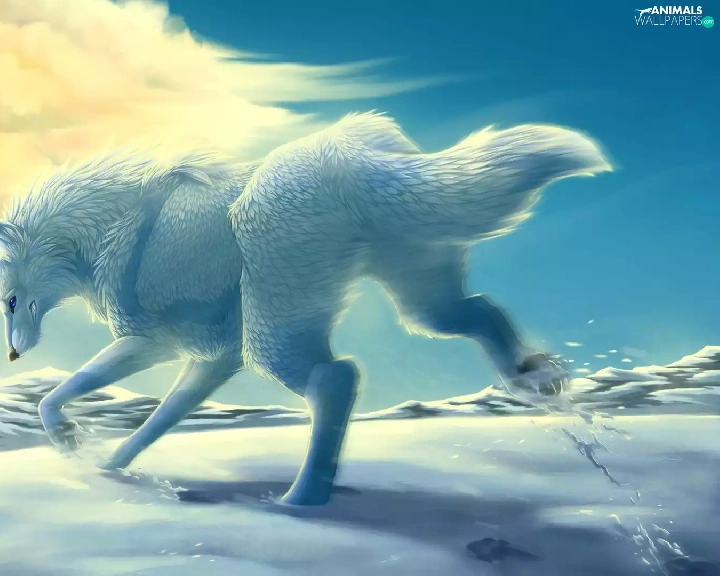 White, Mountains, Cloud, Wolf, snow, winter, gear