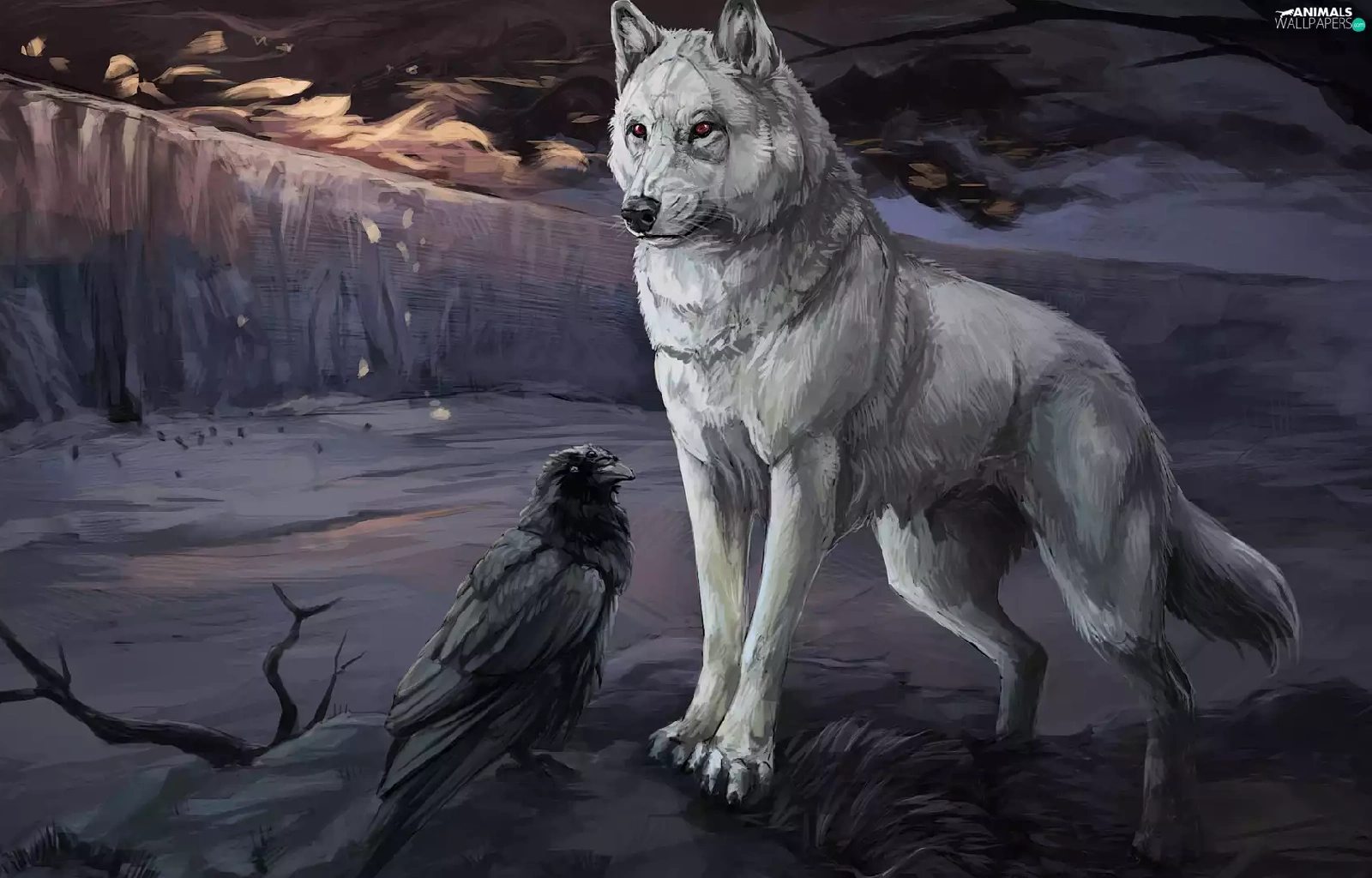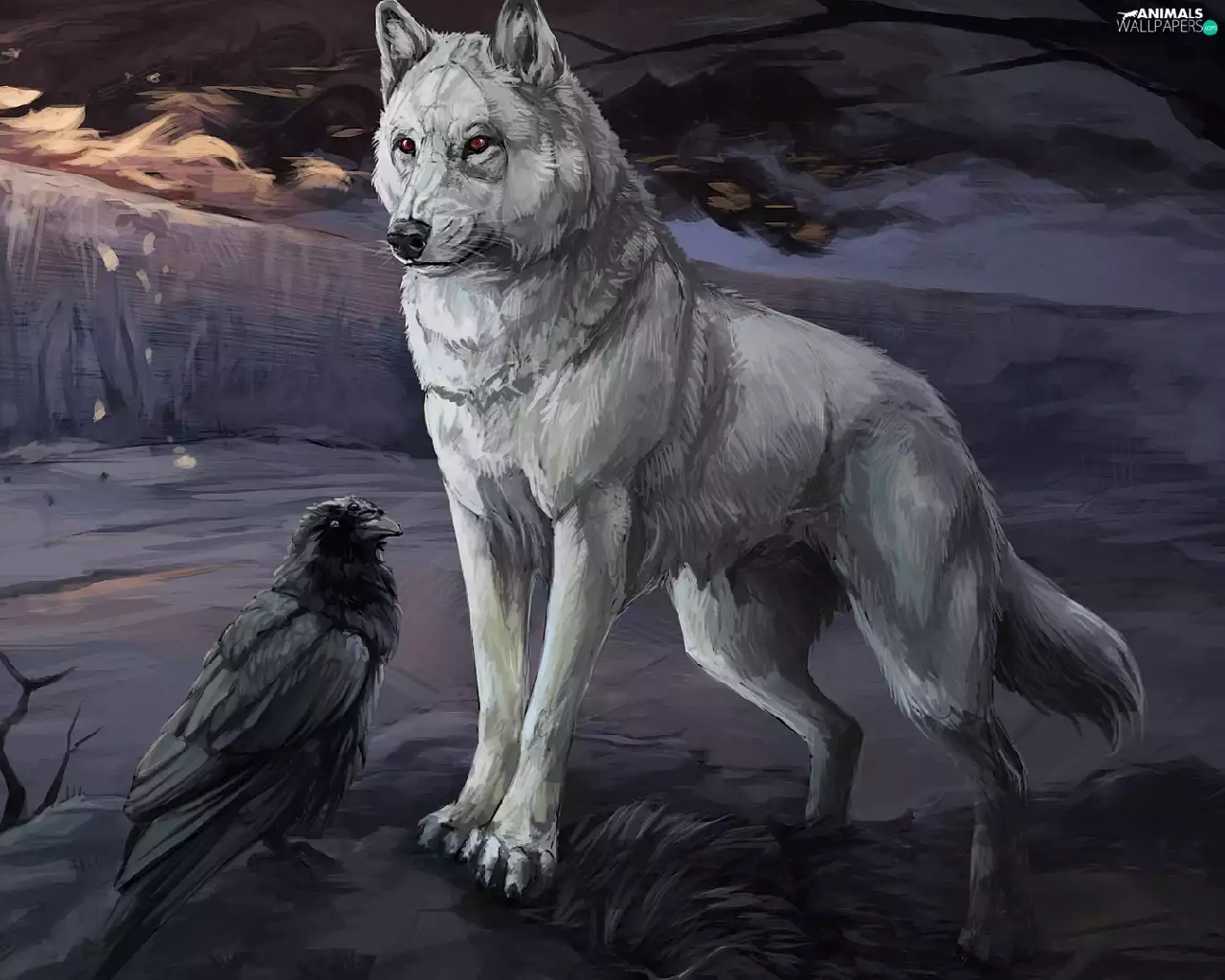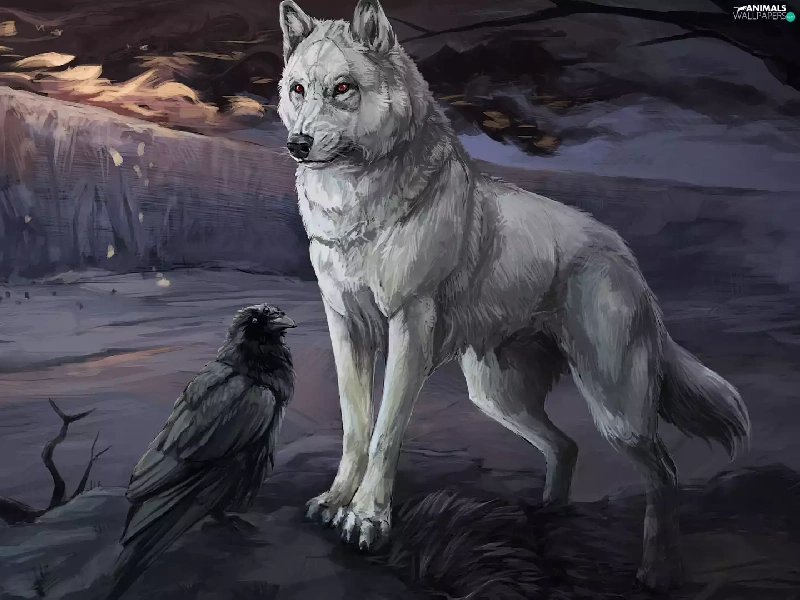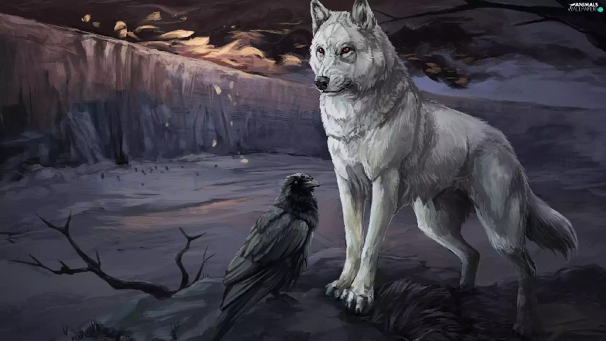 graphics, Crow, twilight, Wolf
