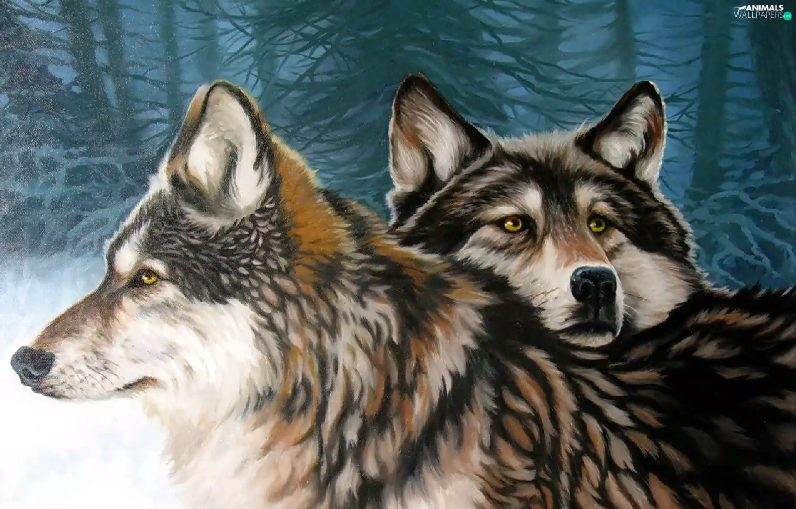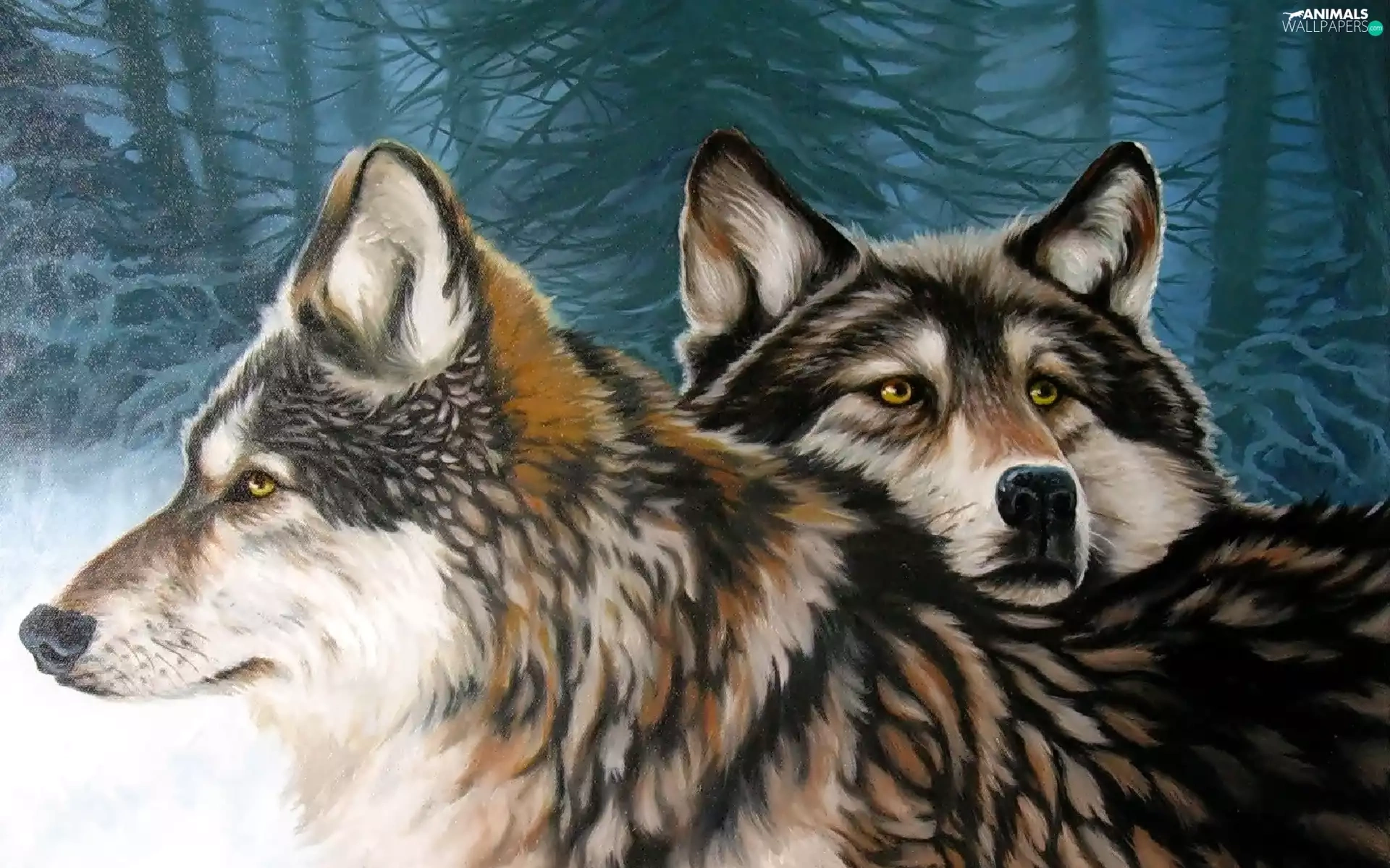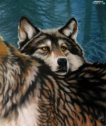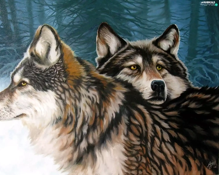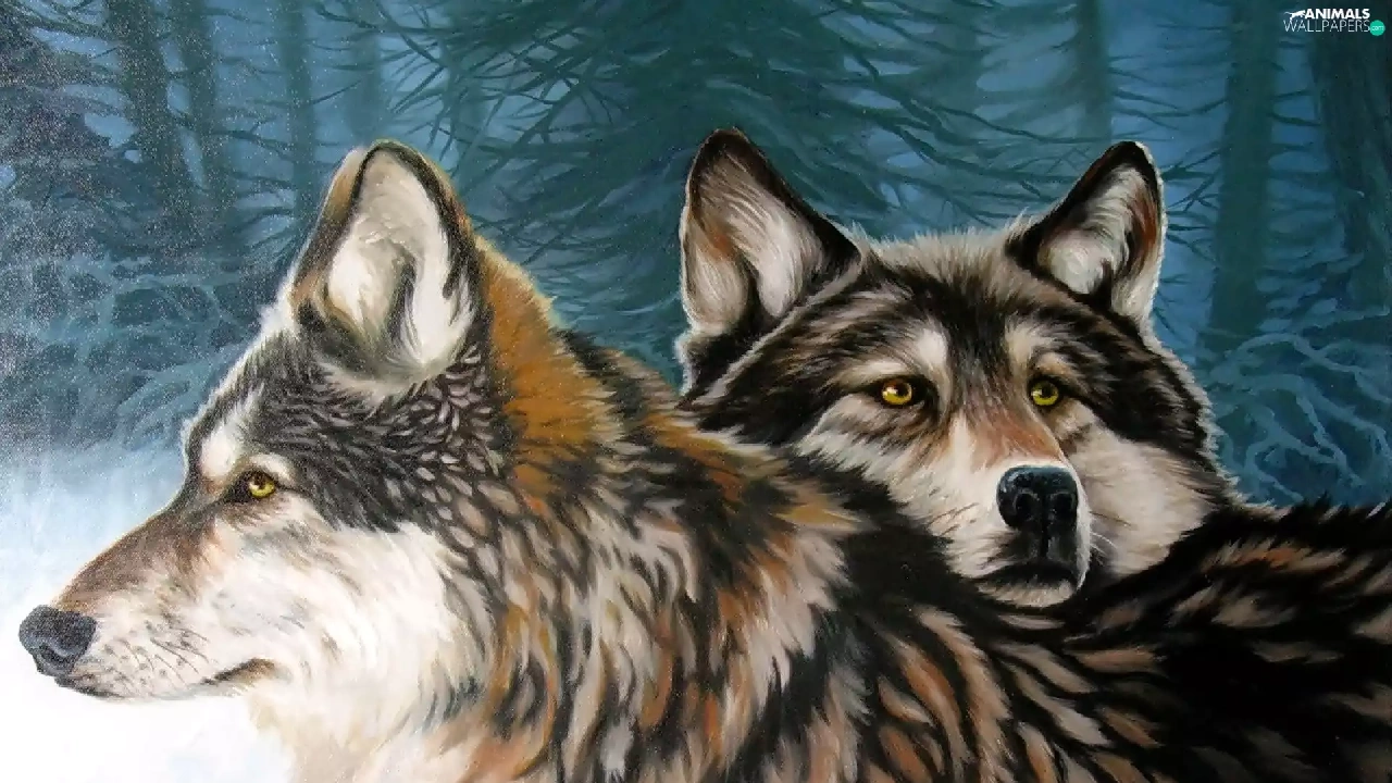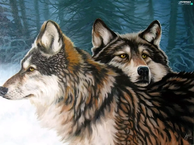 forest, Two cars, wolves