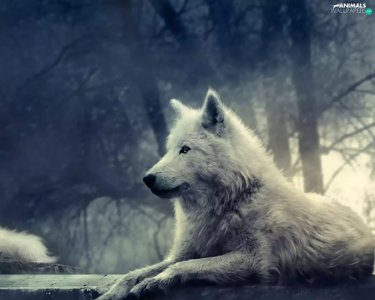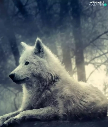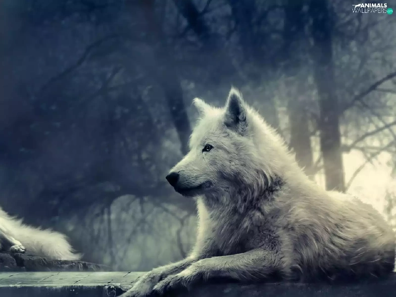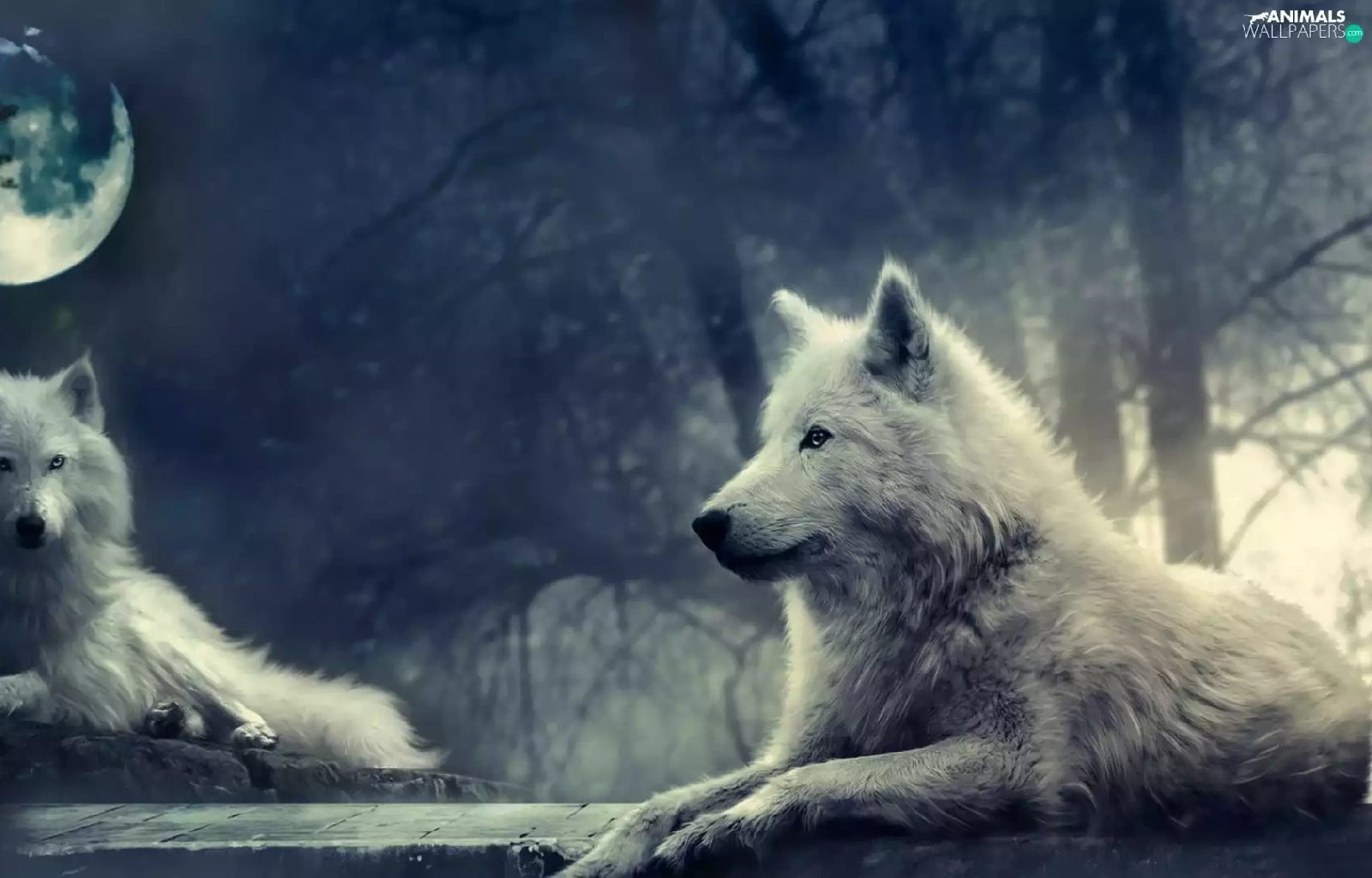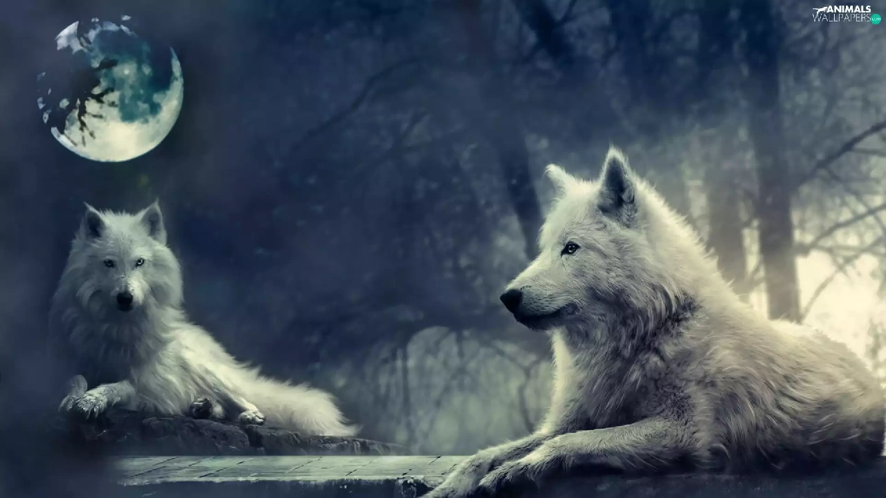 White, Night, moon, wolves