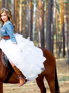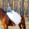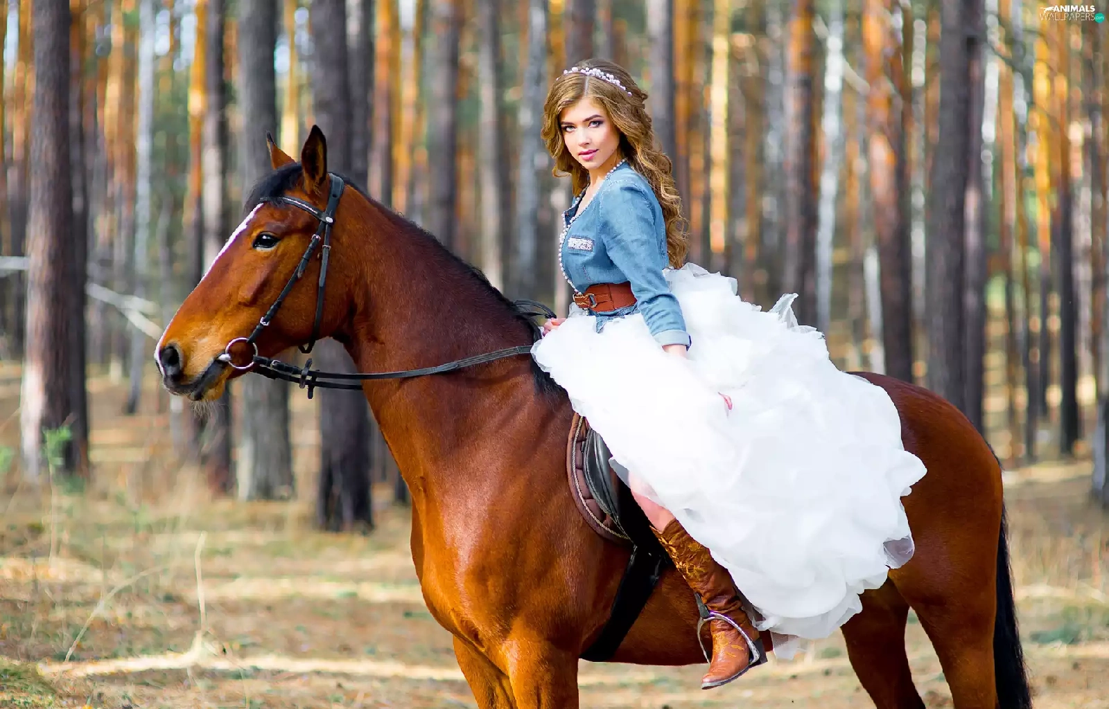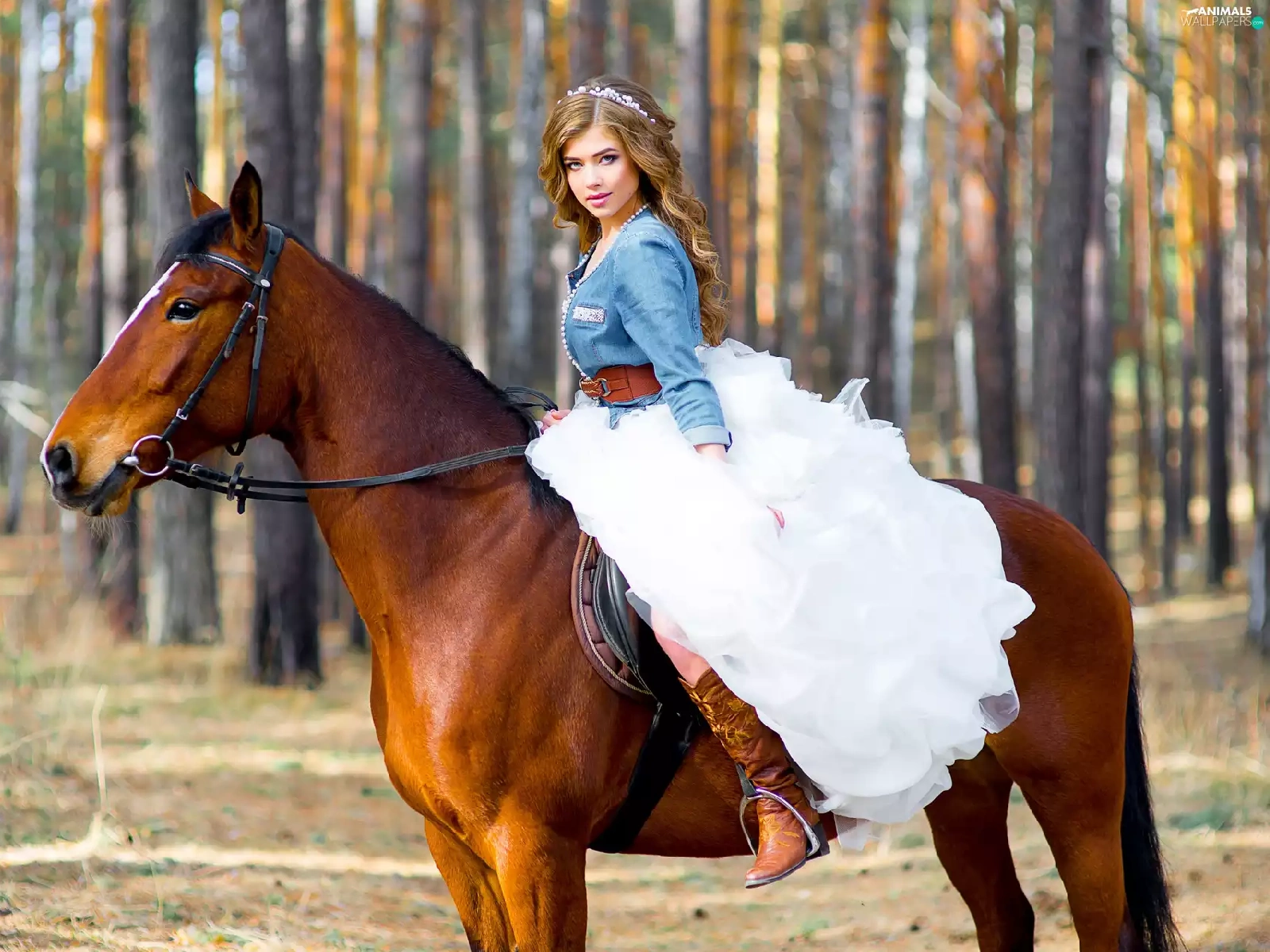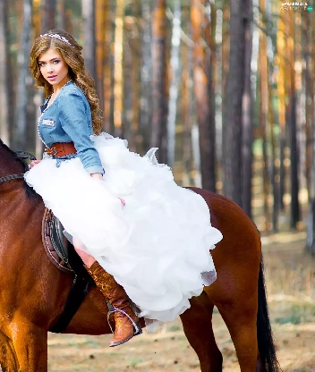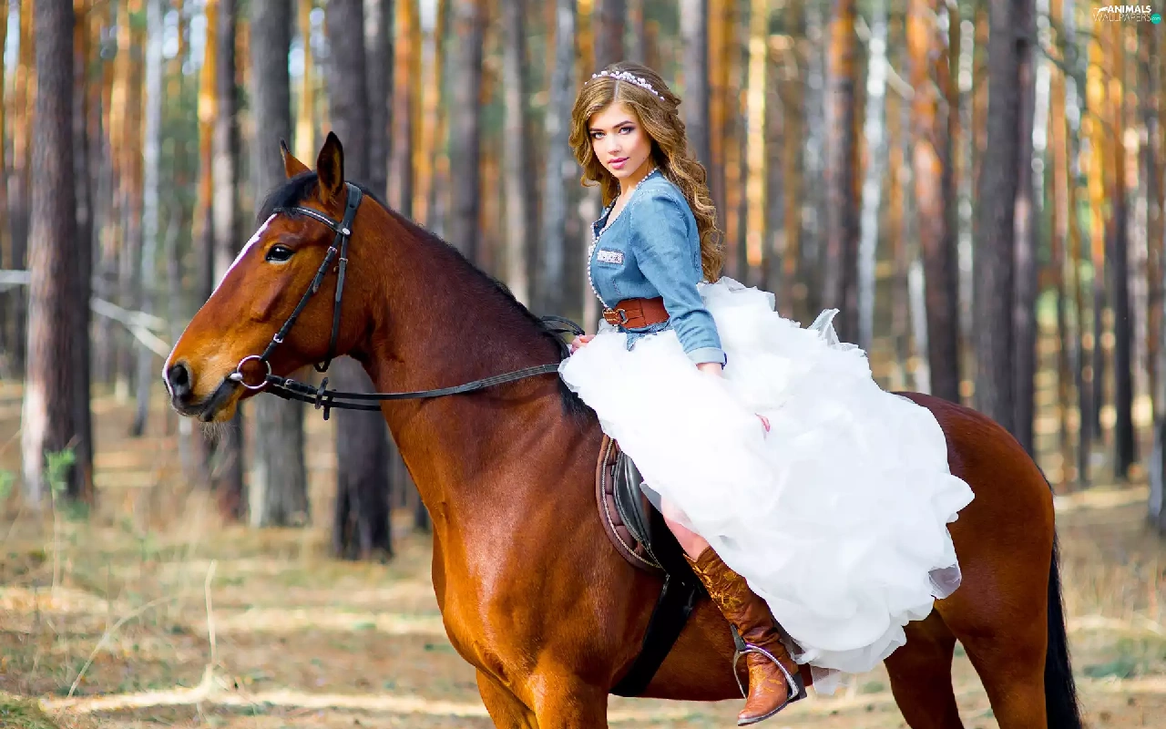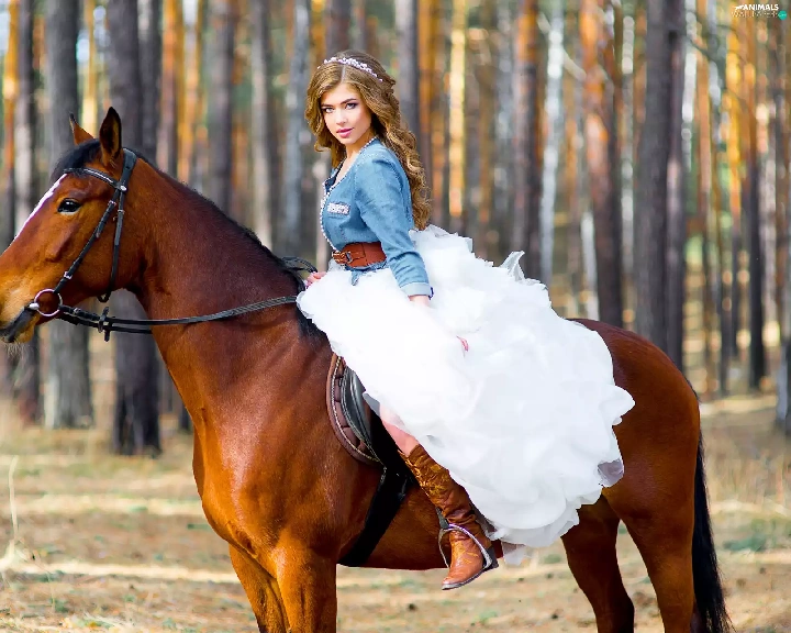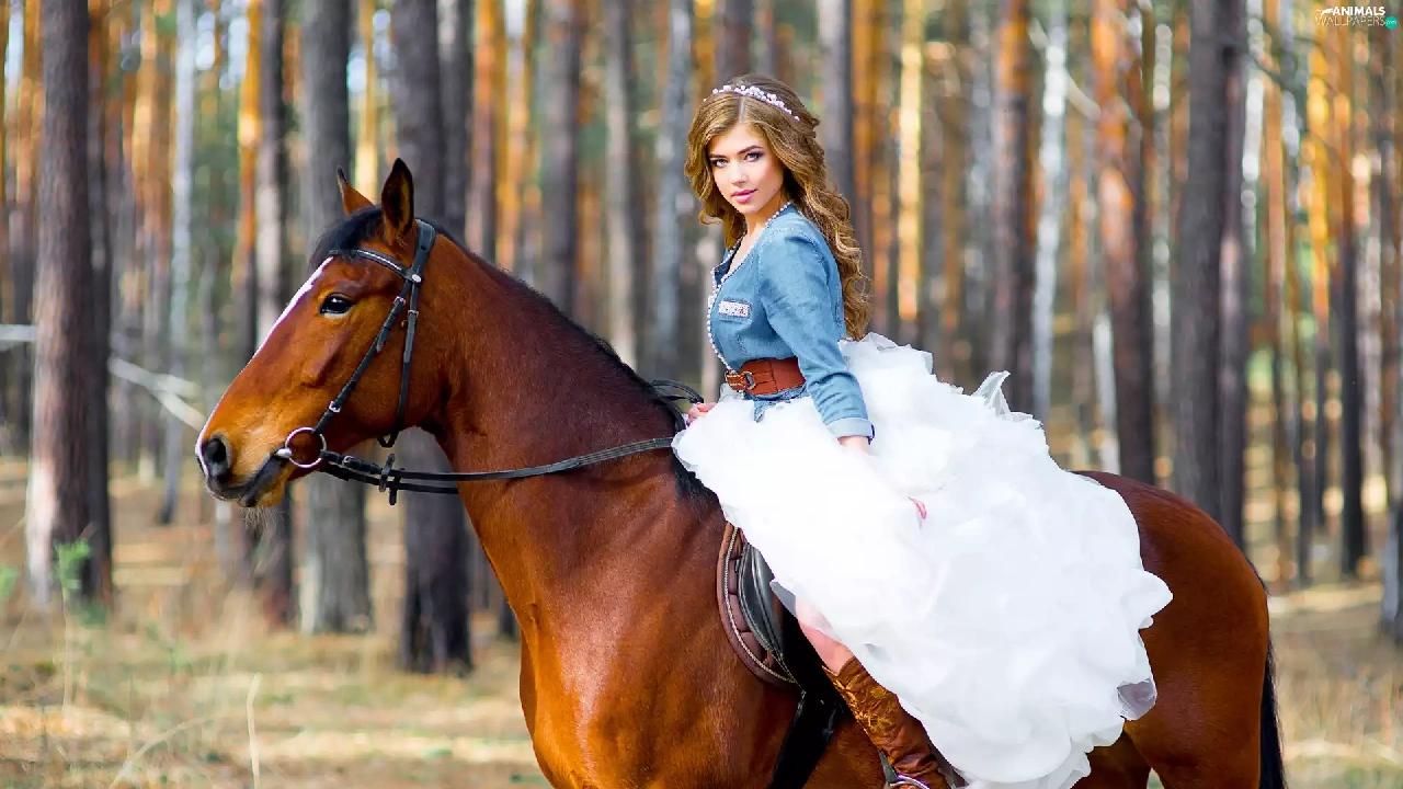 forest, blurry background, Women, Dress, Horse