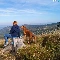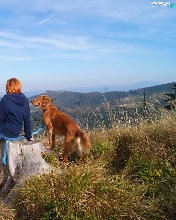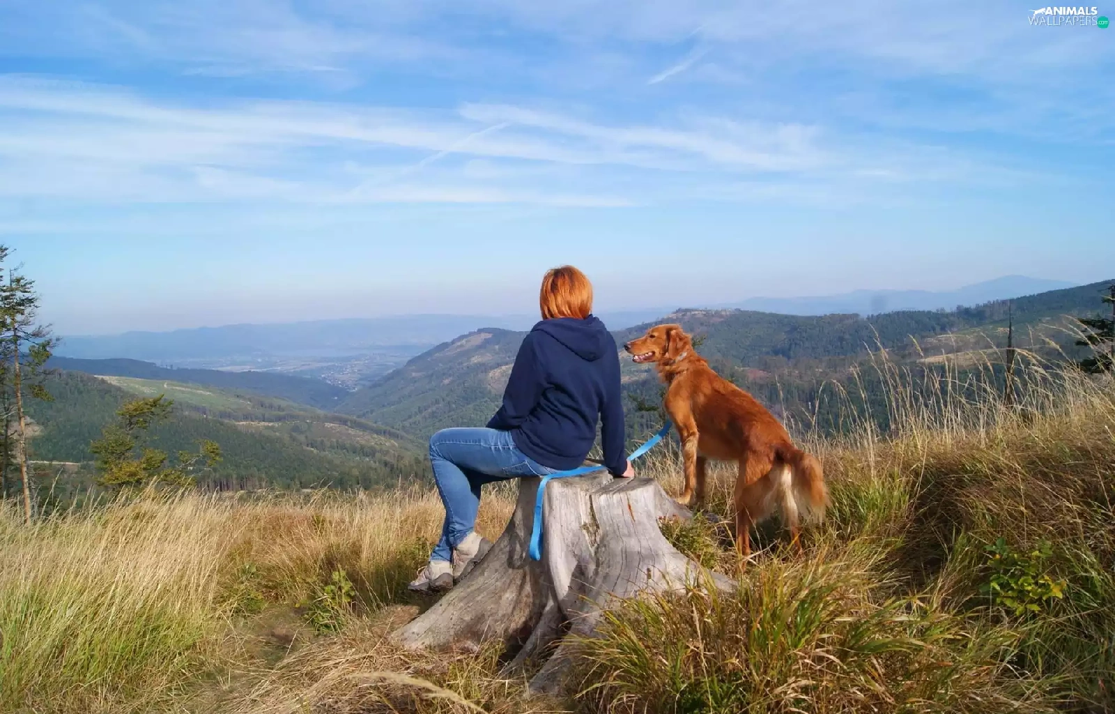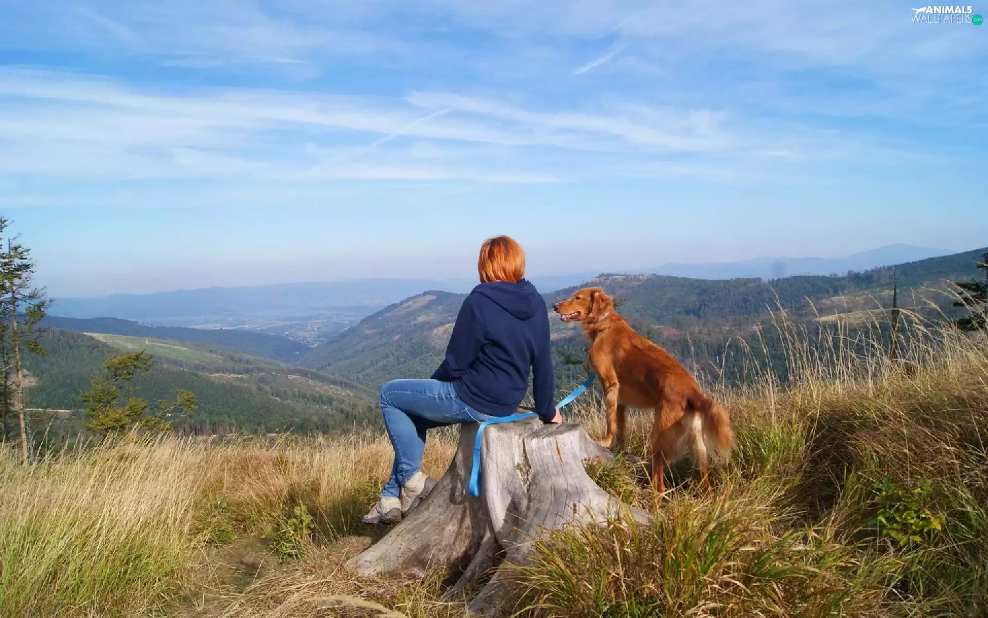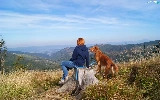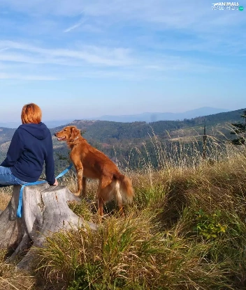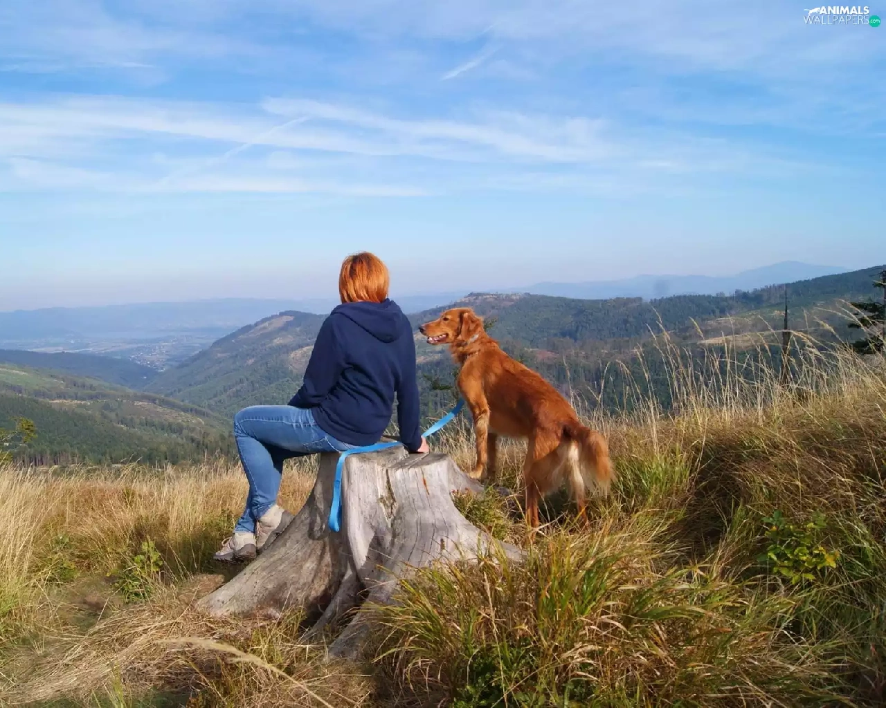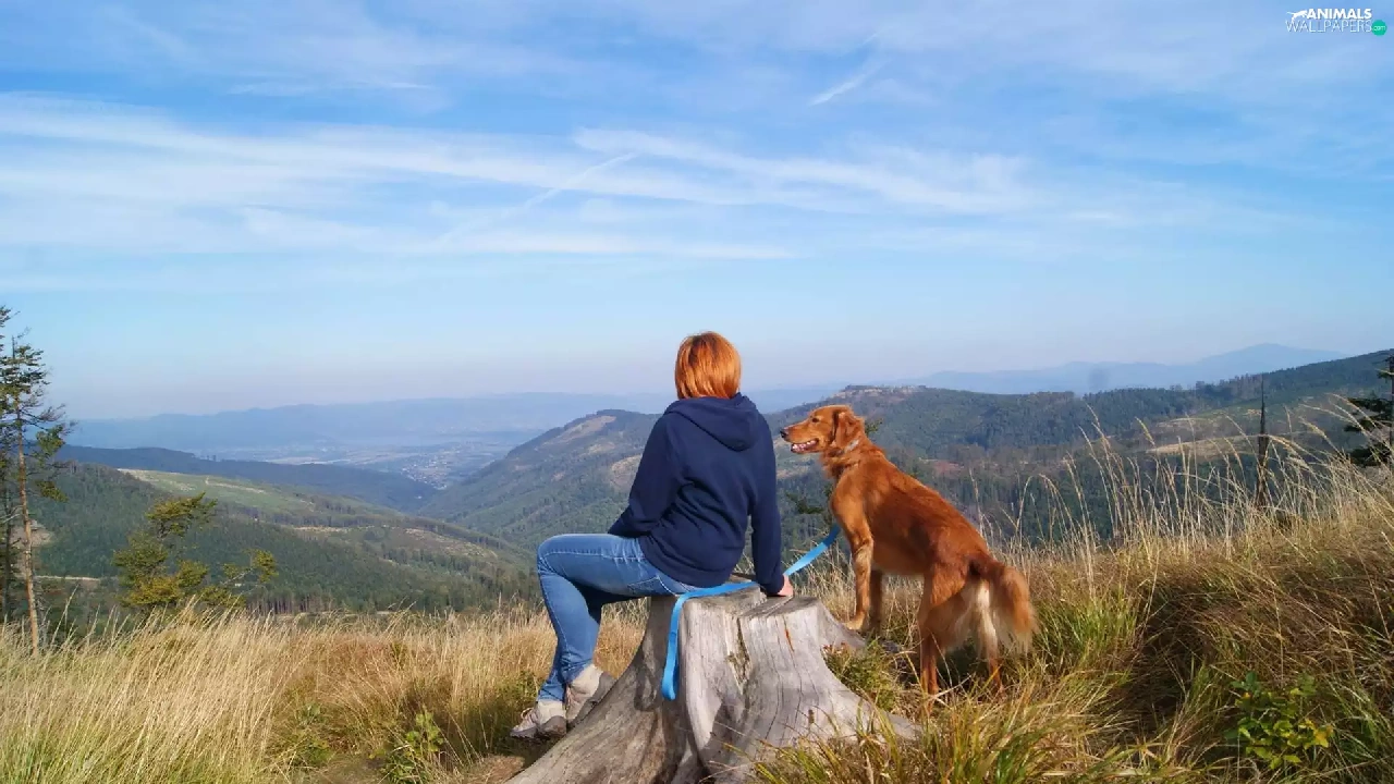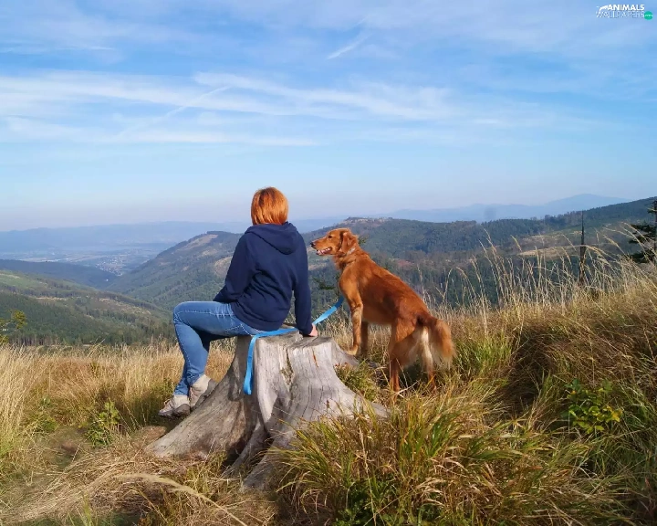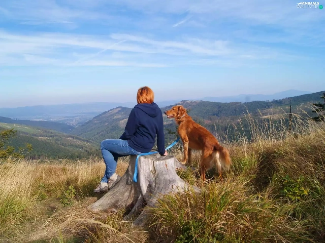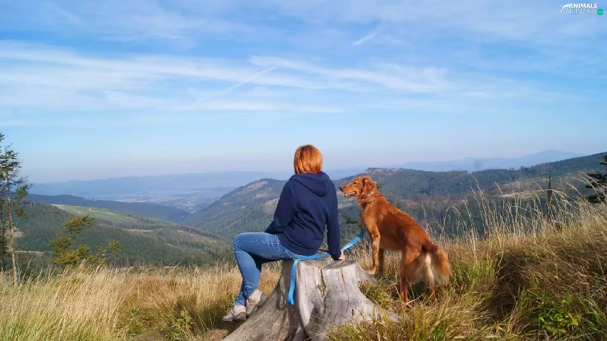 Mountains, dog, landscape, Women