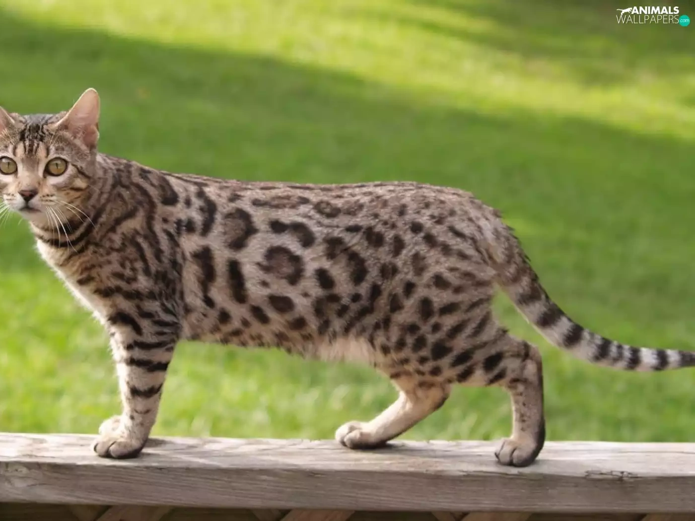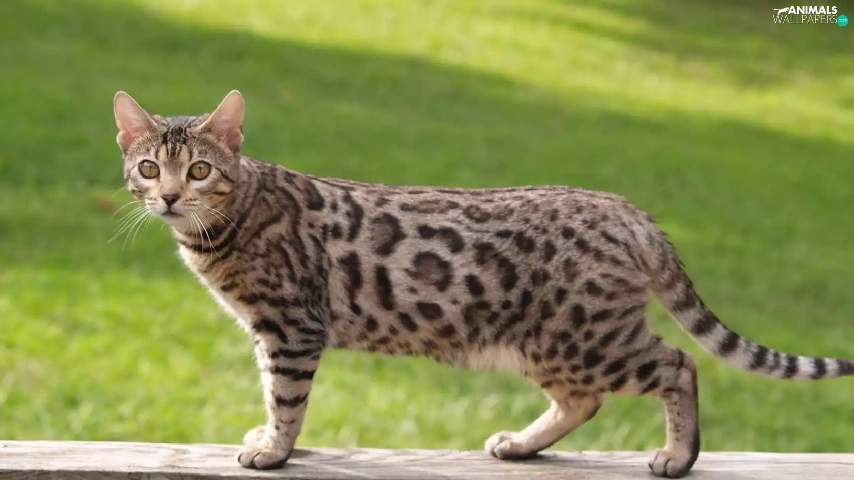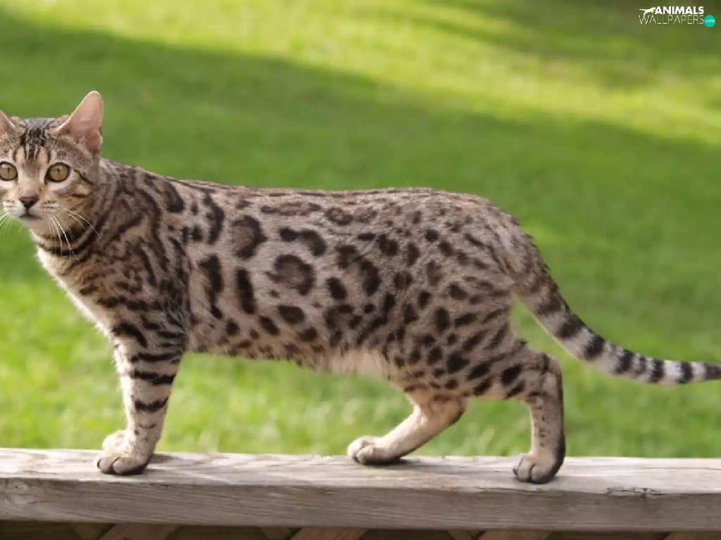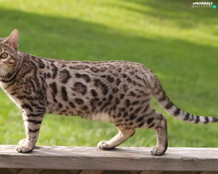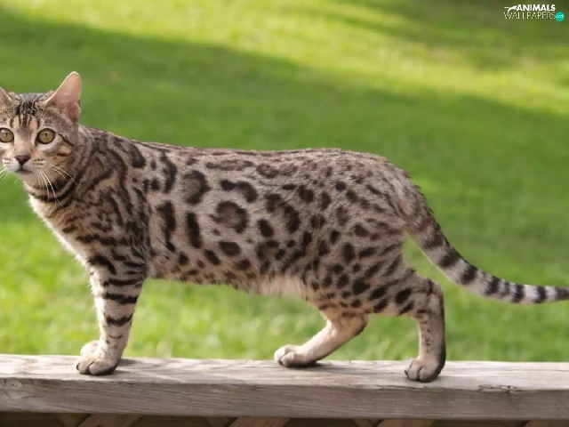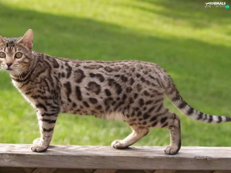 cat, Wooden, hand-rail, bengal