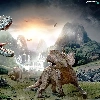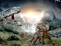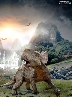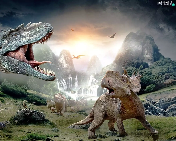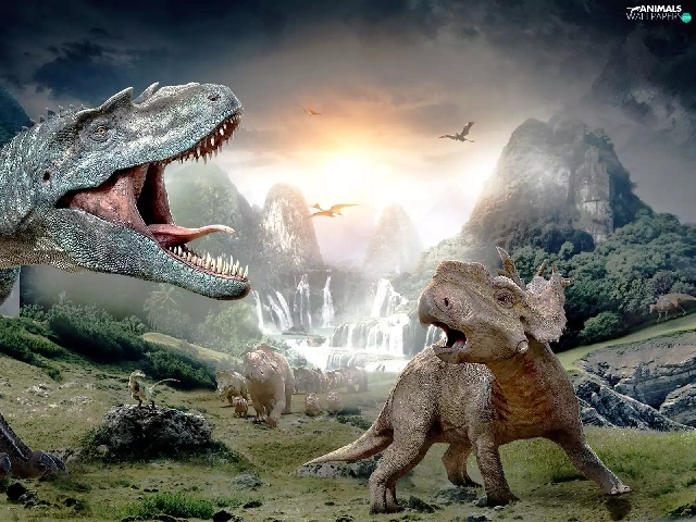 woods, dinosaurs, Mountains
