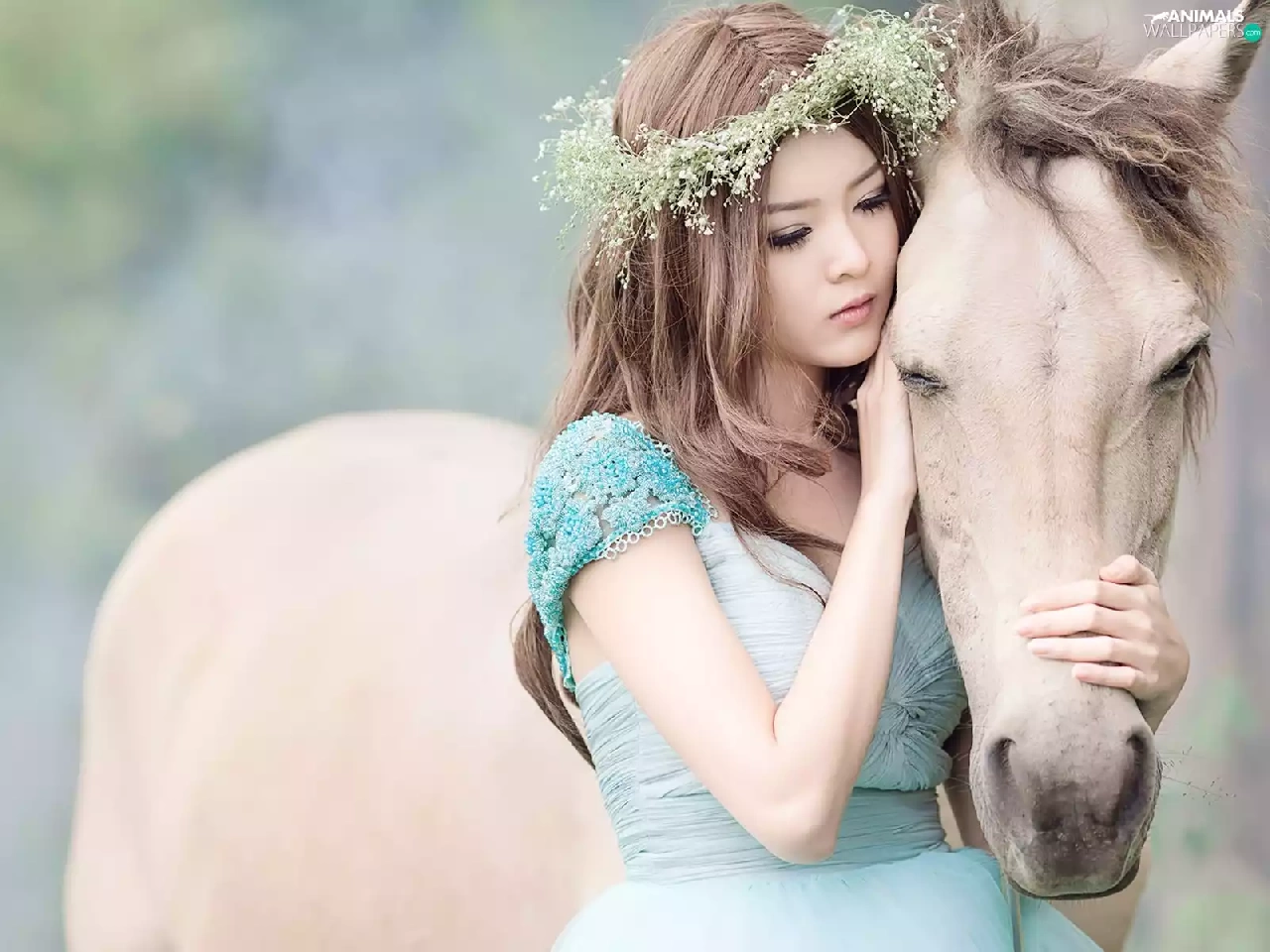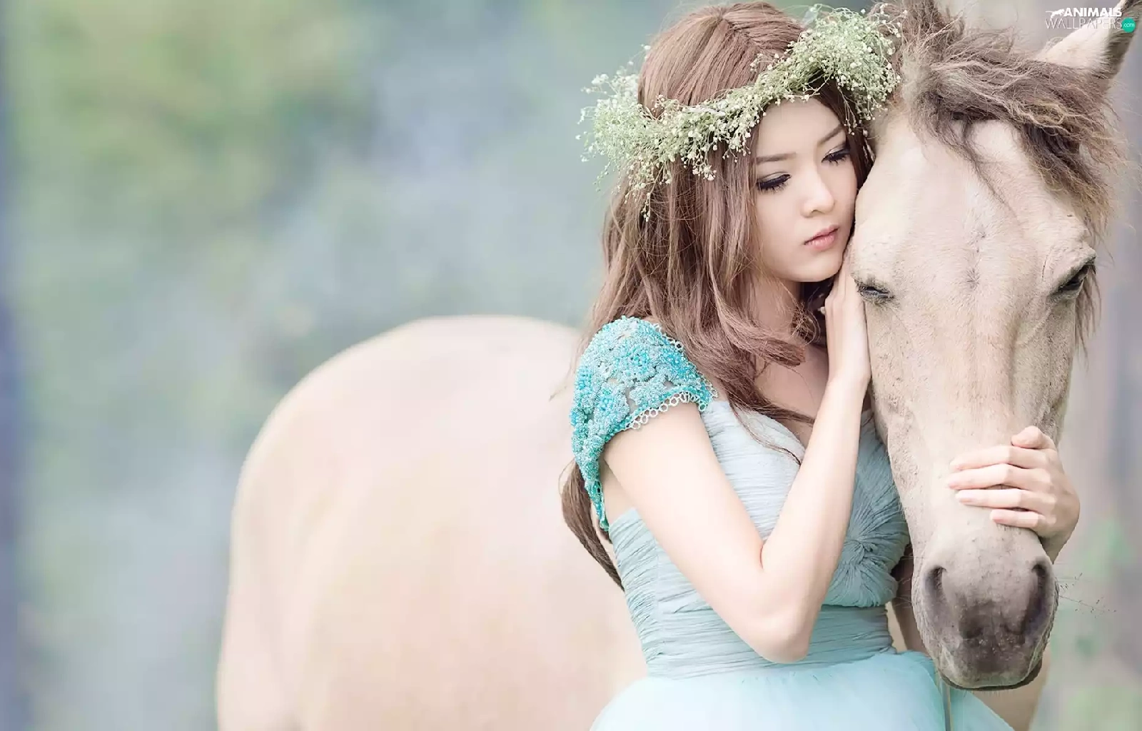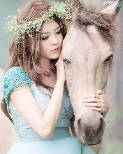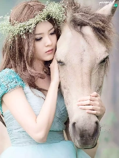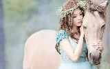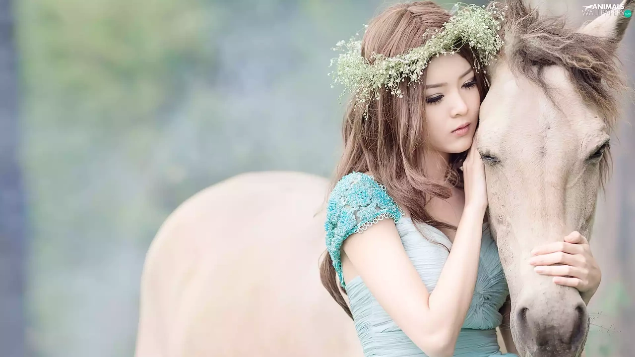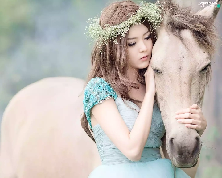 girl, White, Horse, wreath