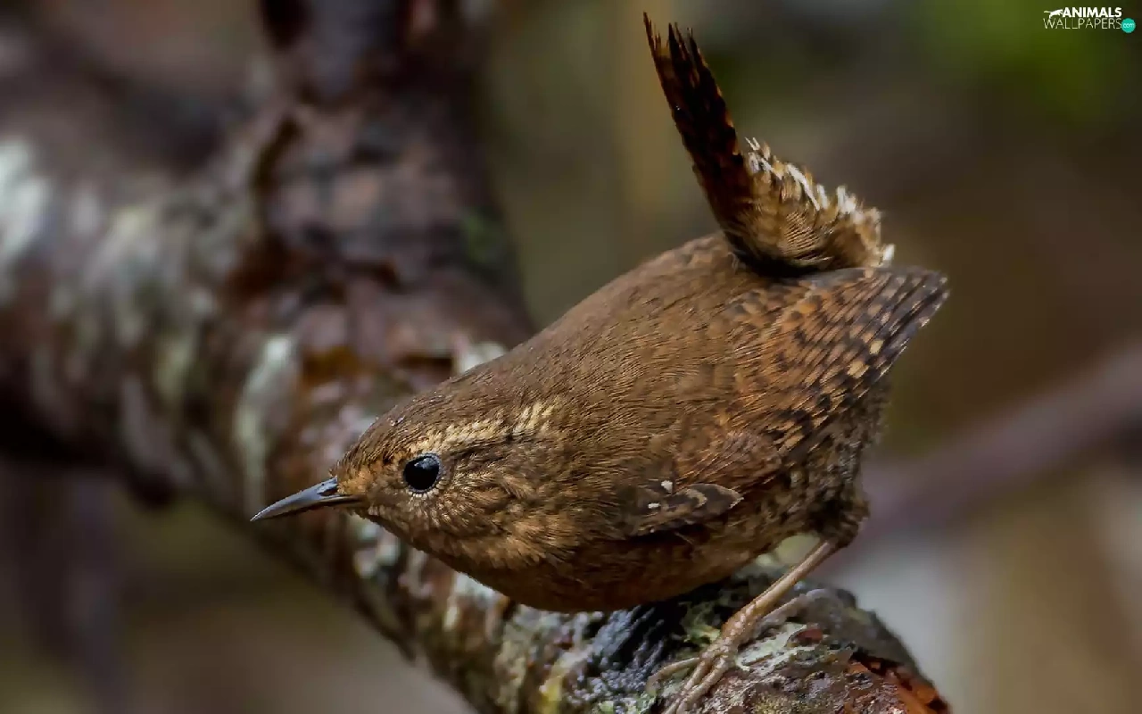 branch, Bird, Winter Wren