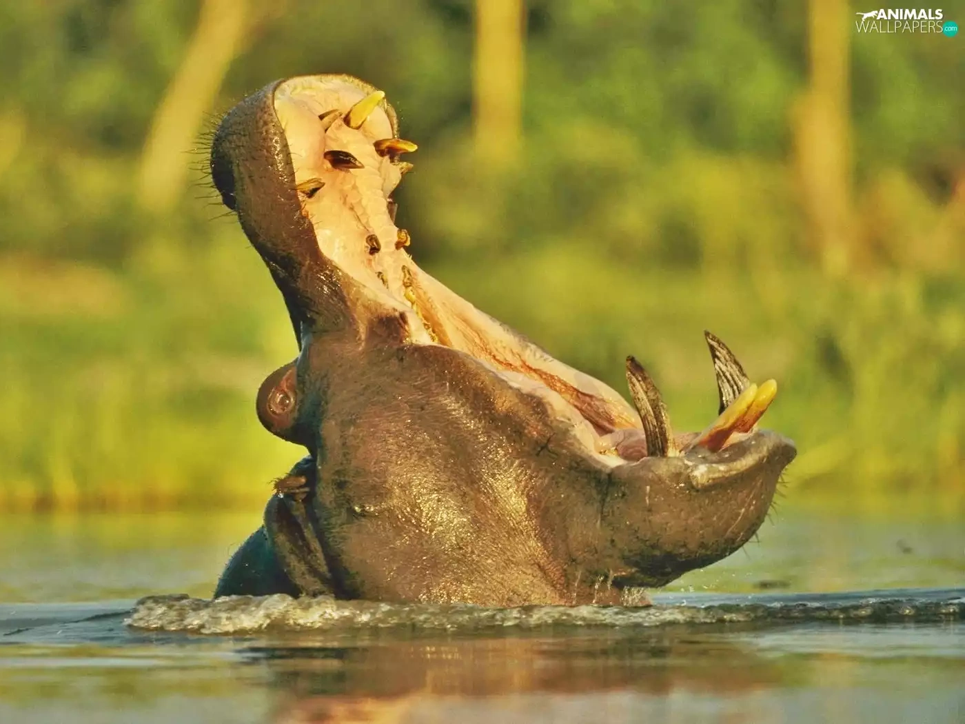 hippo, water, mouth, yawning