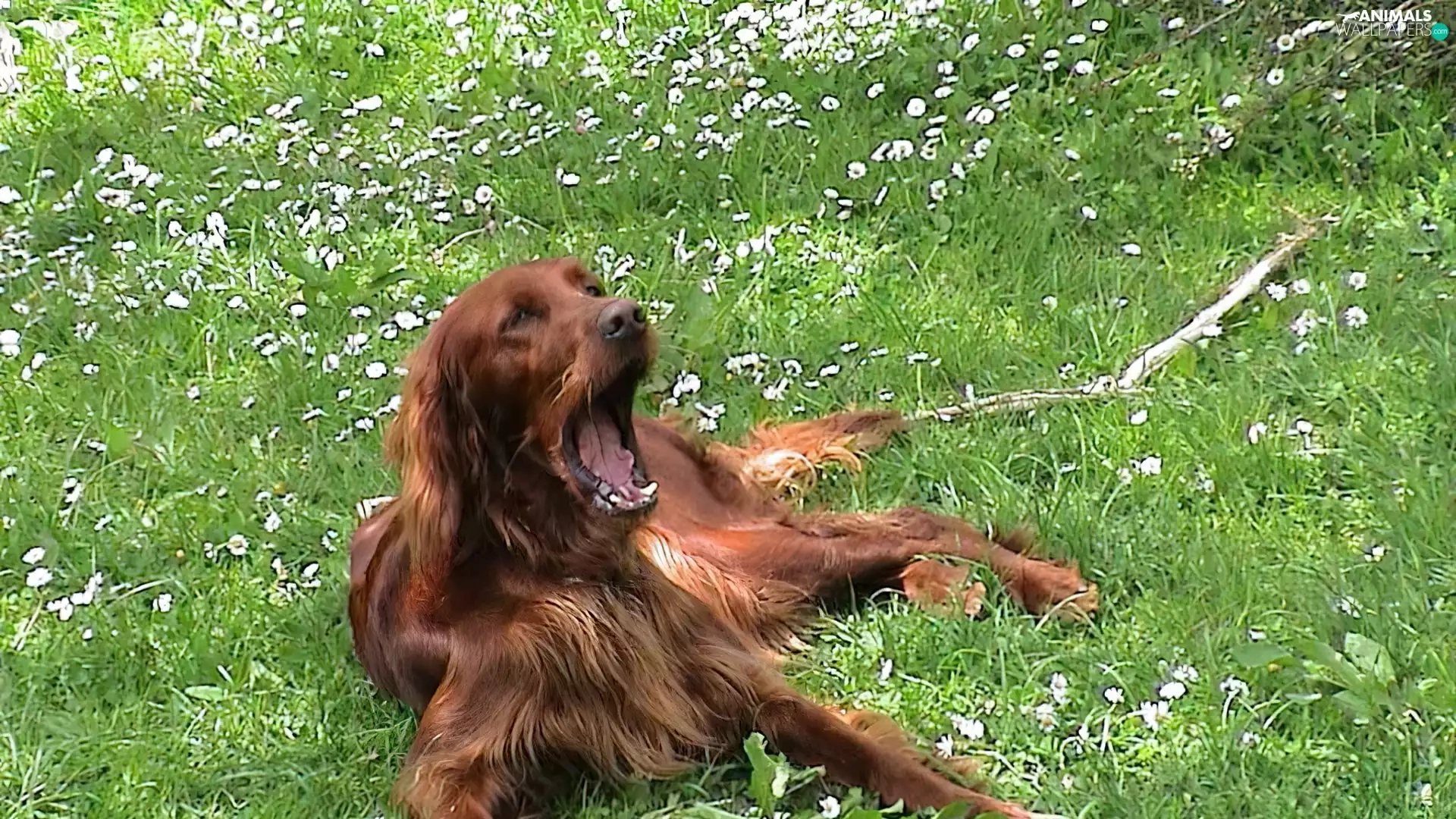 yawning, Irish Setter