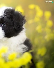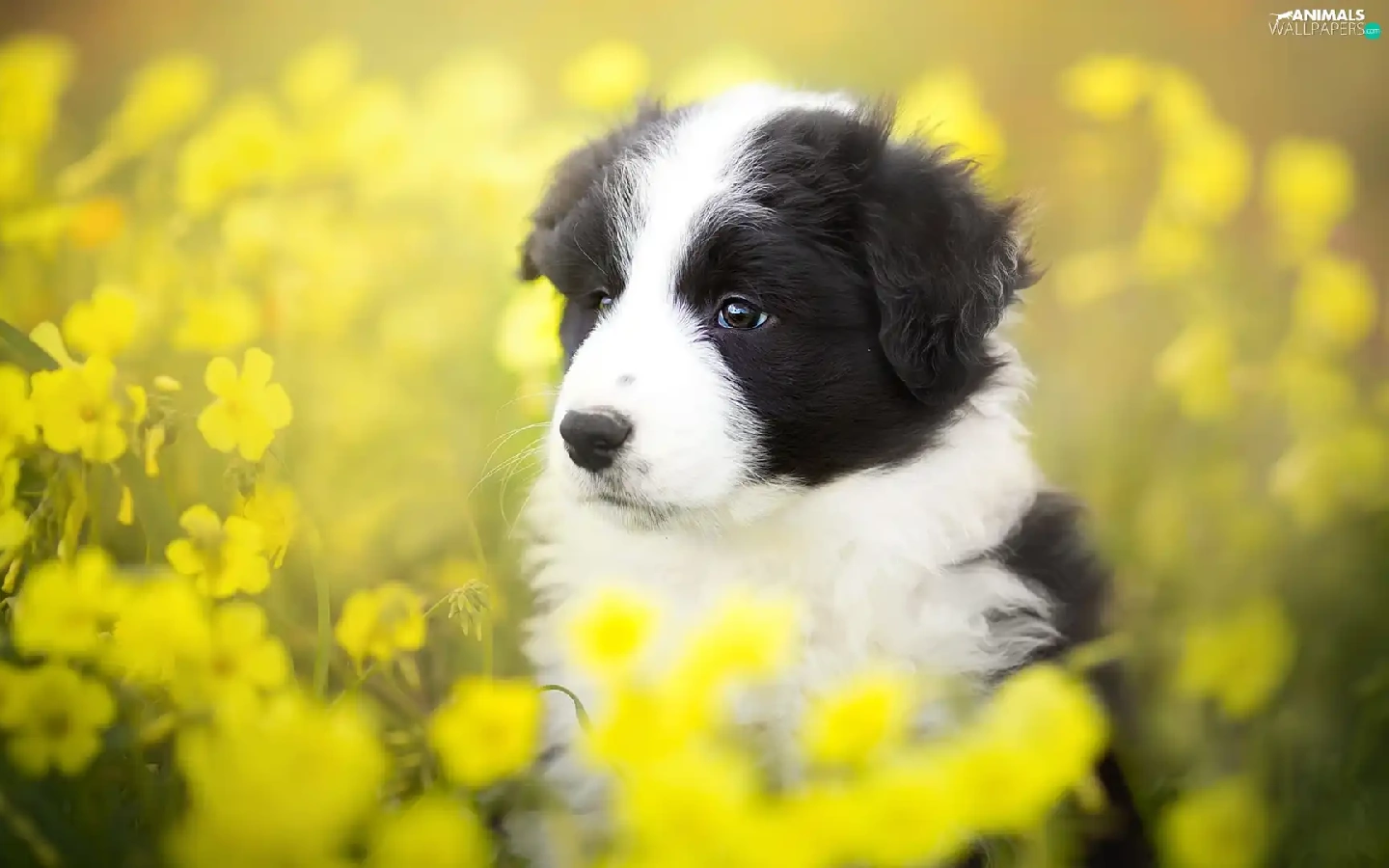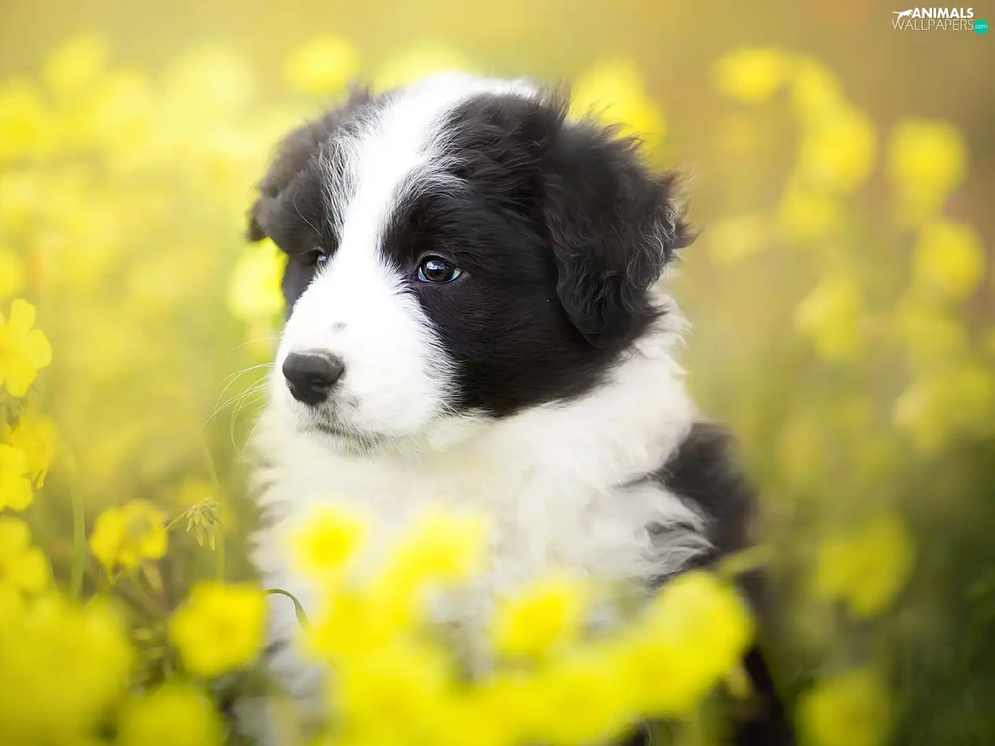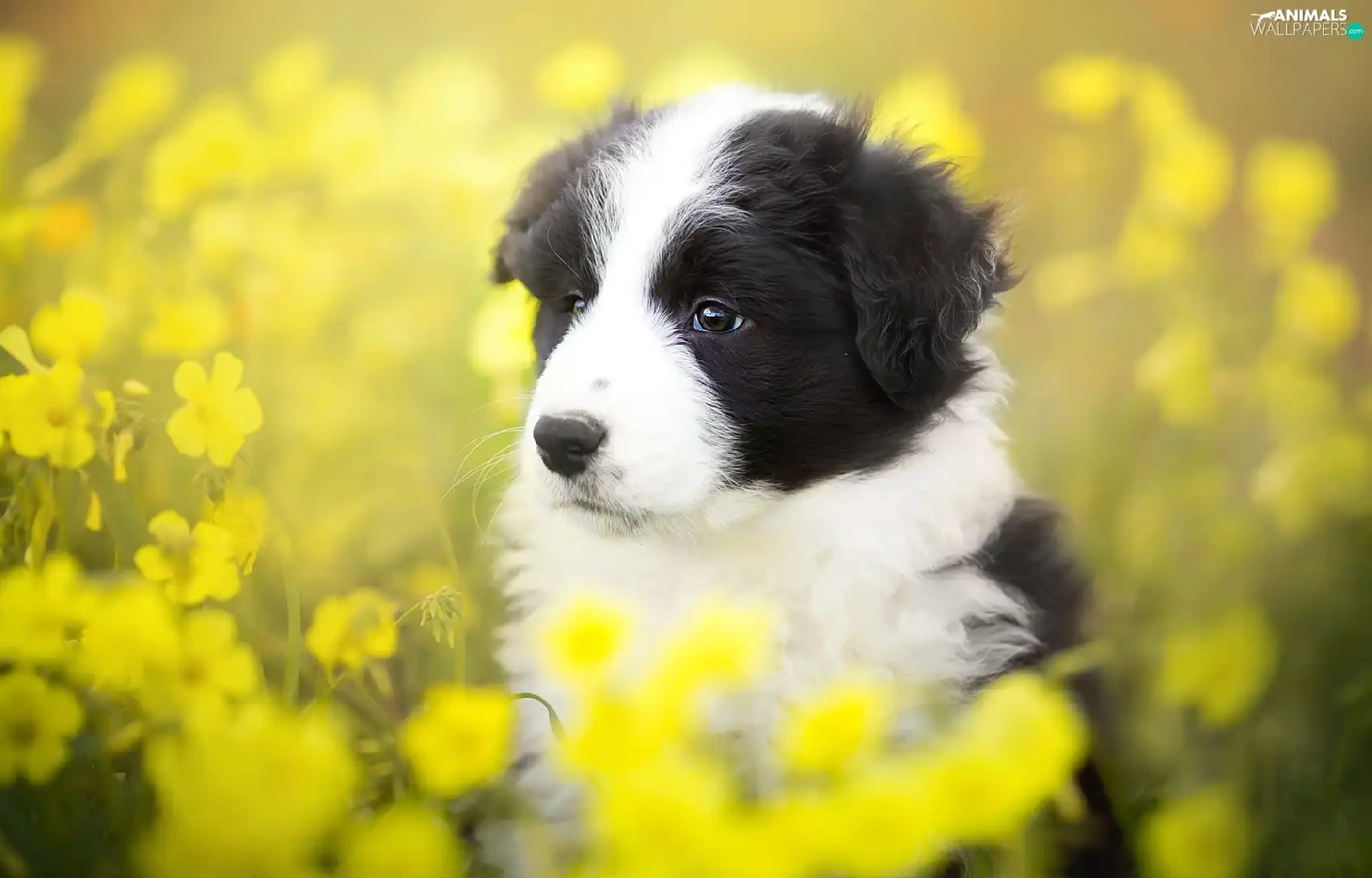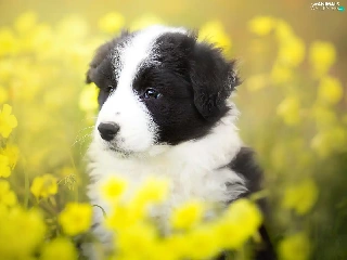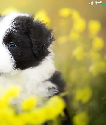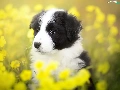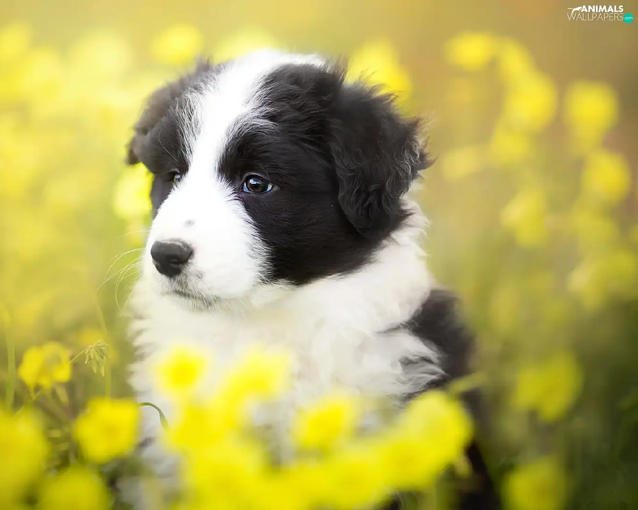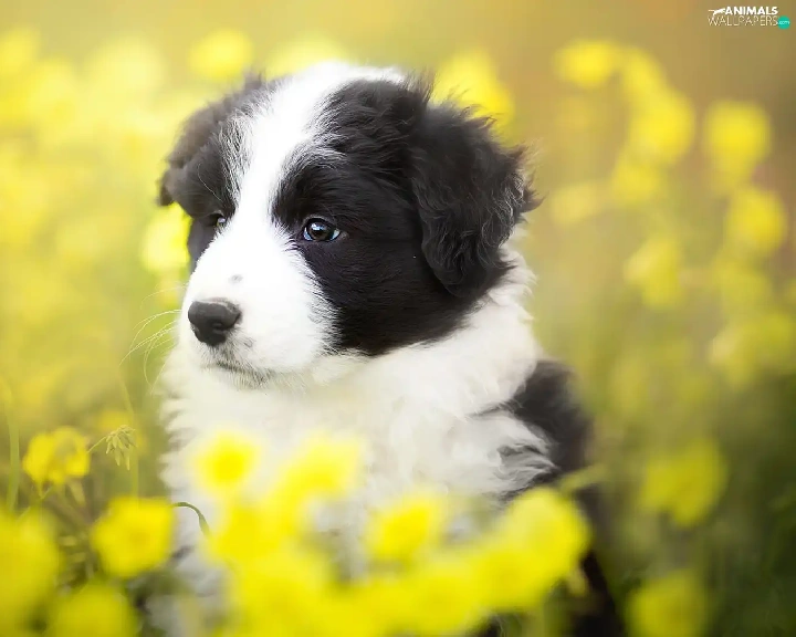 Yellow, Flowers, Border Collie, Meadow, Puppy