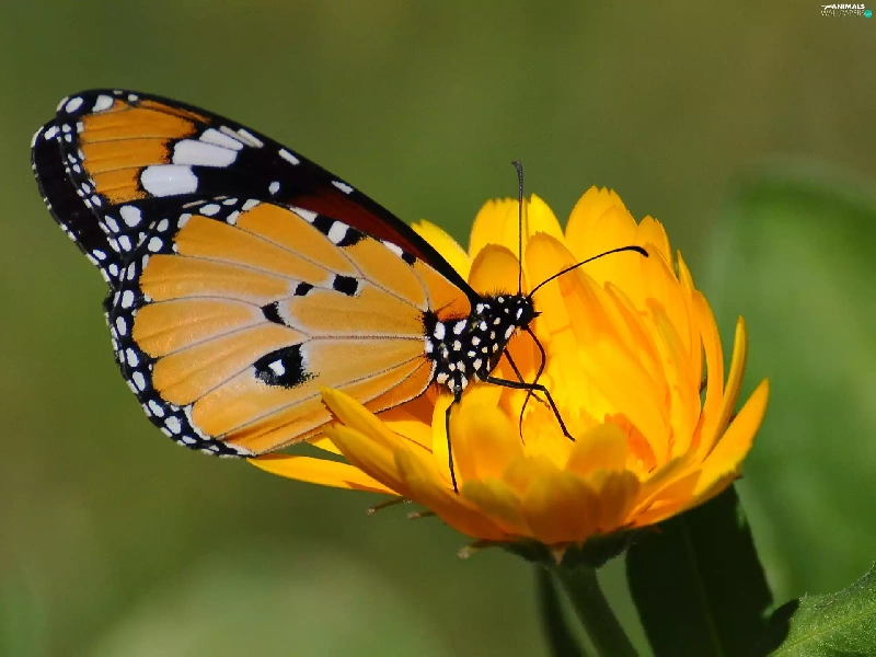 Colourfull Flowers, butterfly, Yellow