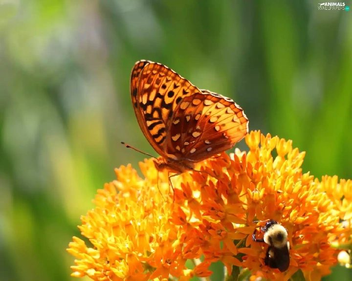 Colourfull Flowers, butterfly, Yellow