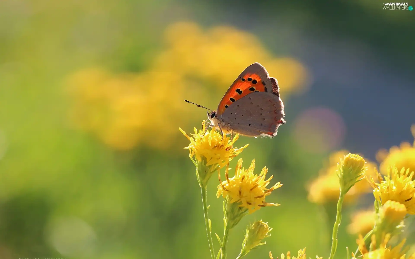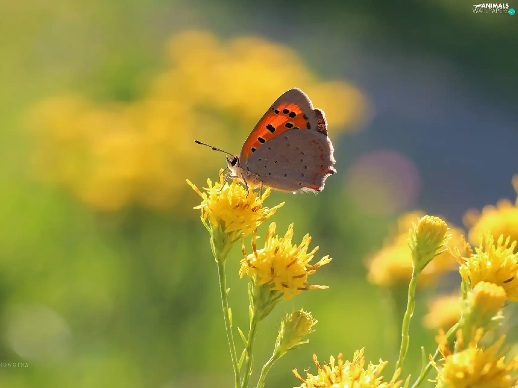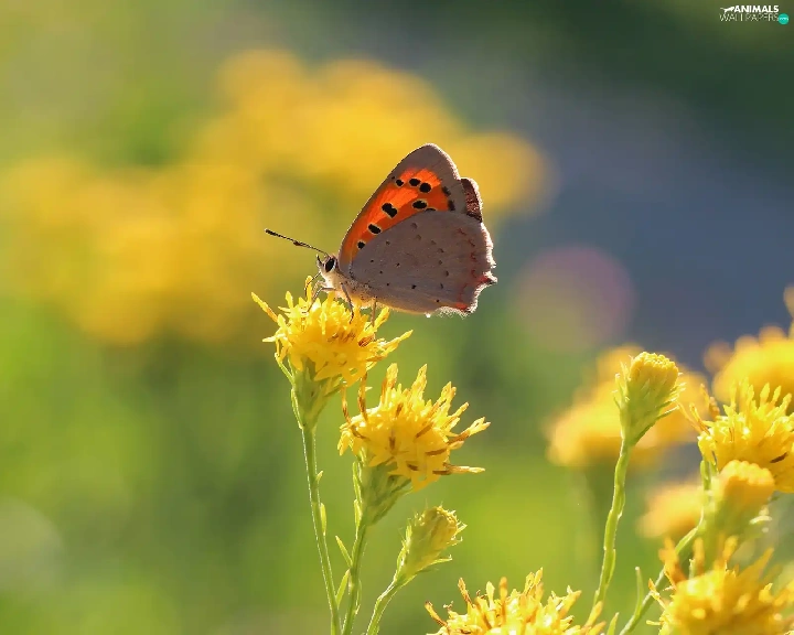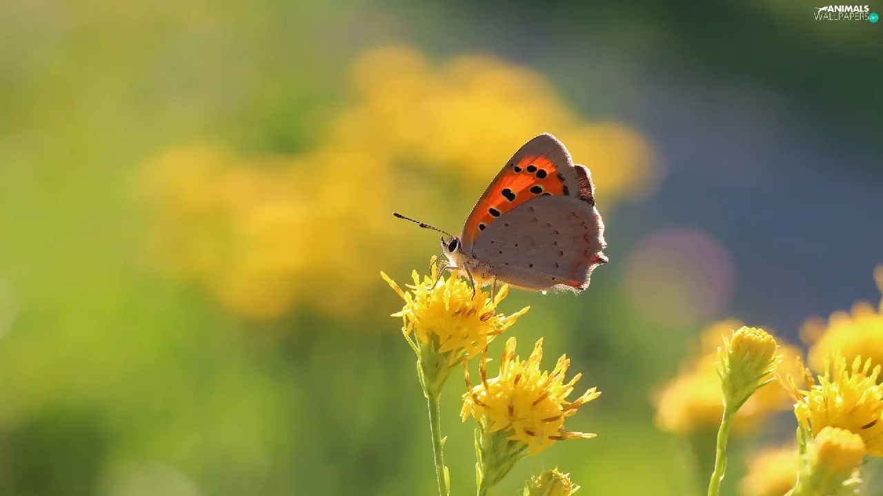 Yellow, Flowers, butterfly, Insect, Lycaena