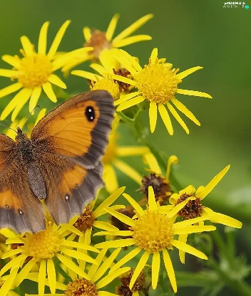 butterfly, Yellow, Flowers, Coenonympha Pamphilus