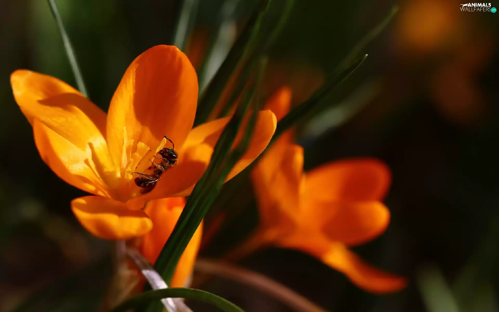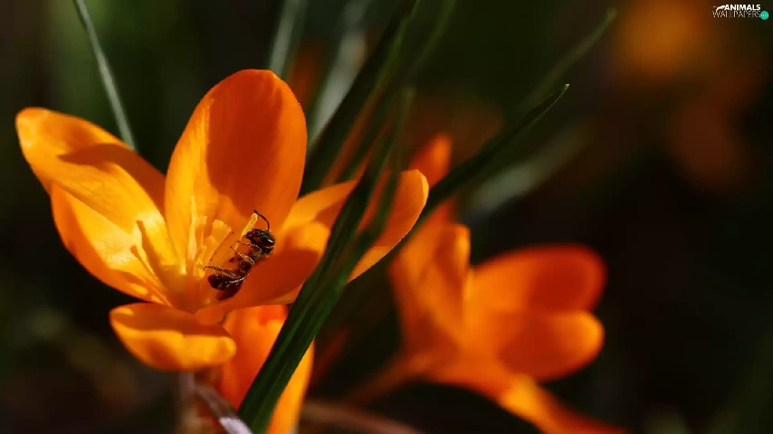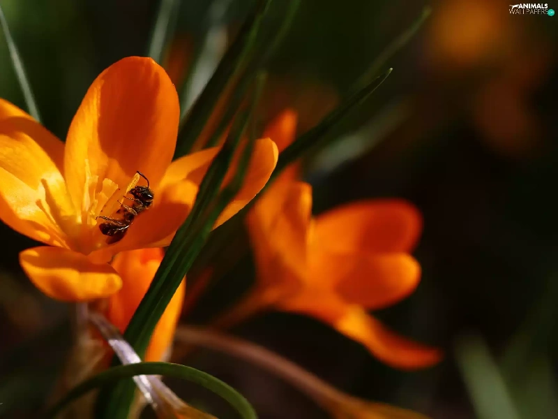 Colourfull Flowers, Spring, Yellow, crocus, wasp