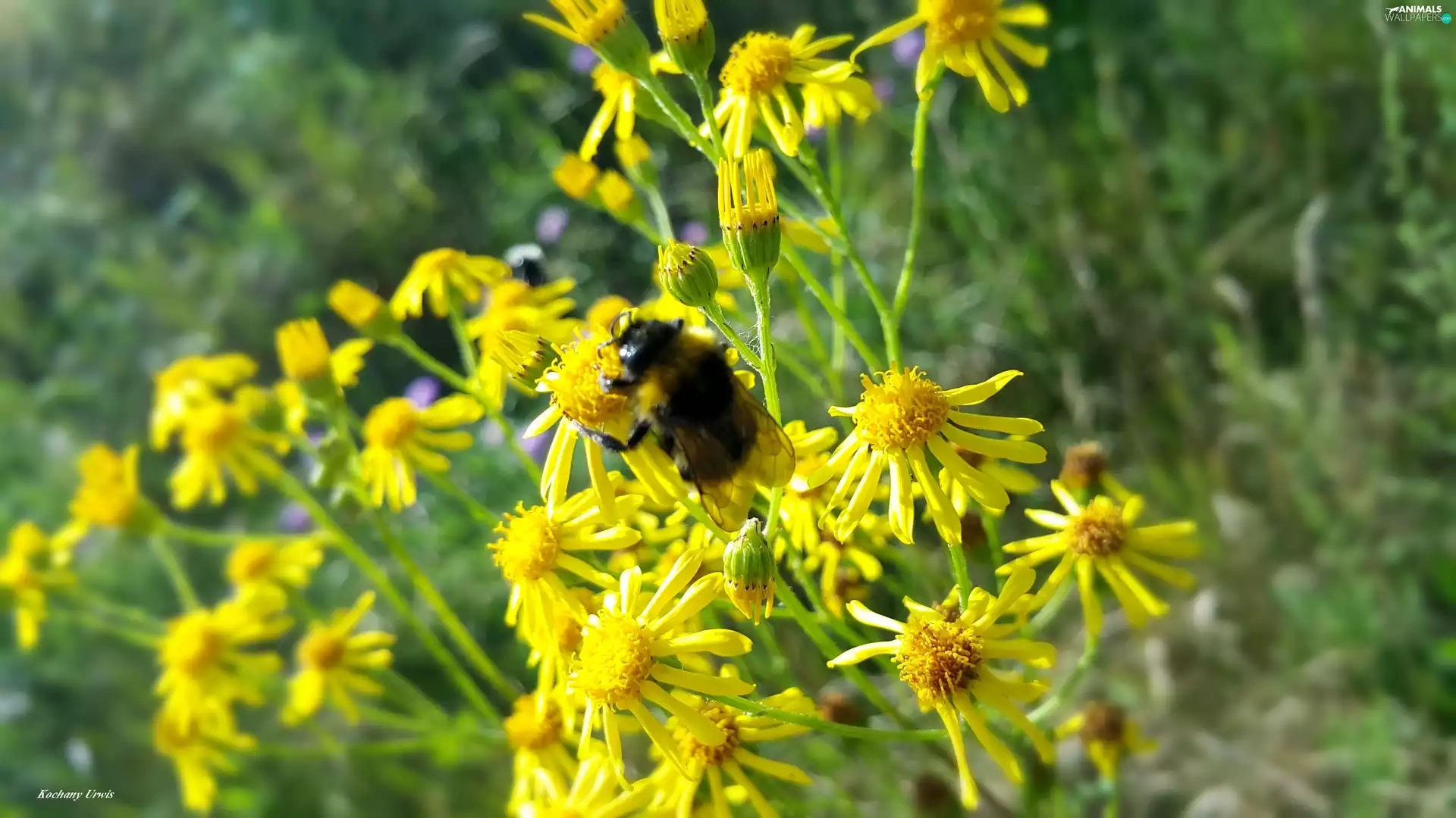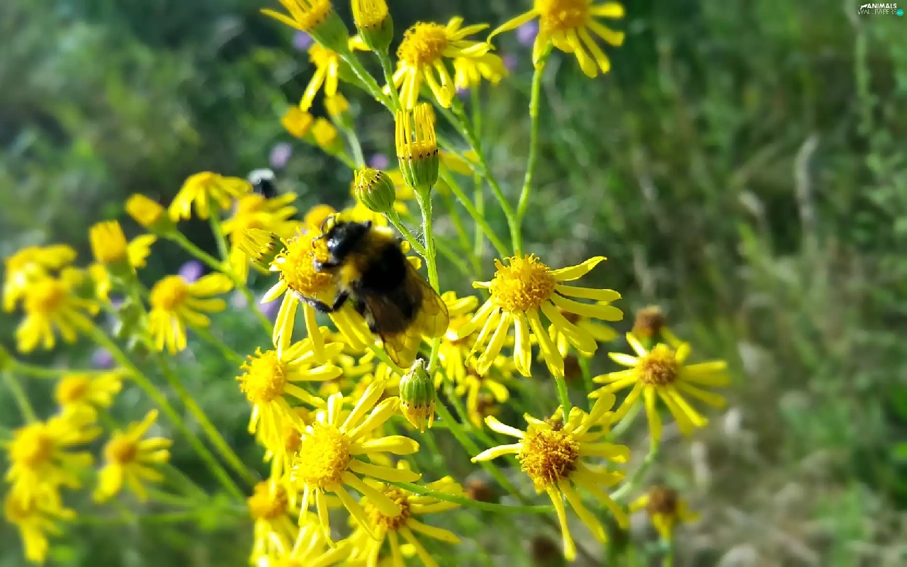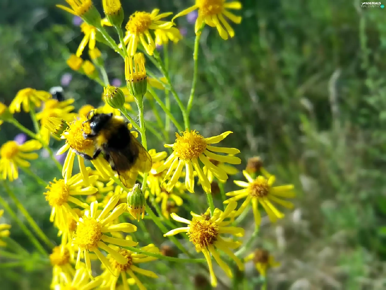 Wildflowers, Flowers, dumbledor, Yellow