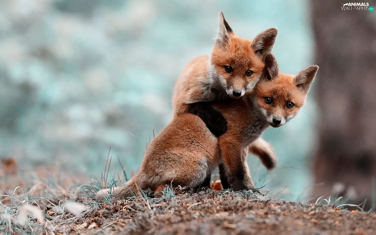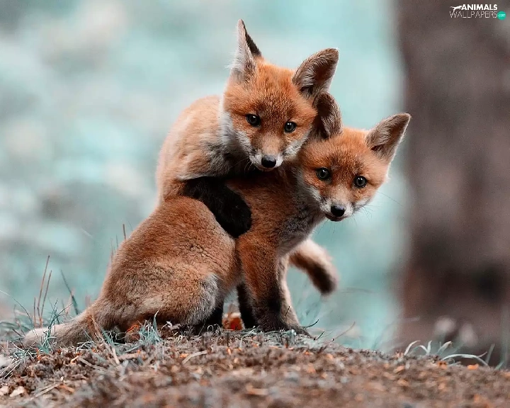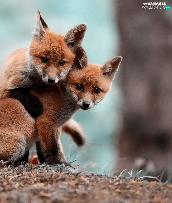 foxes, Two cars, young
