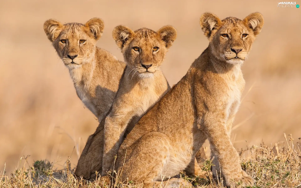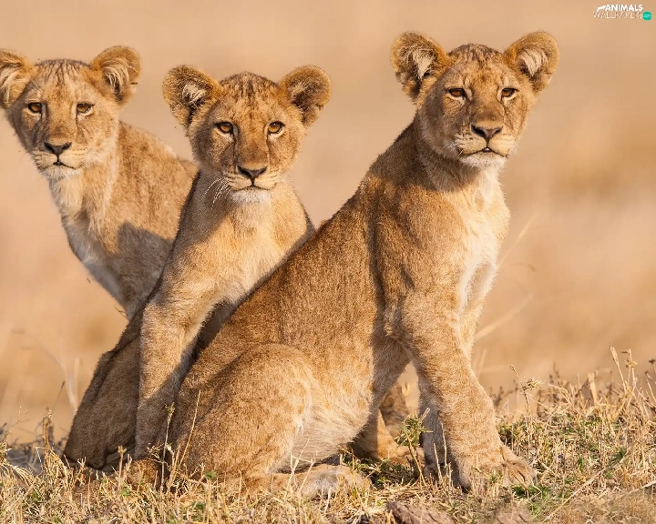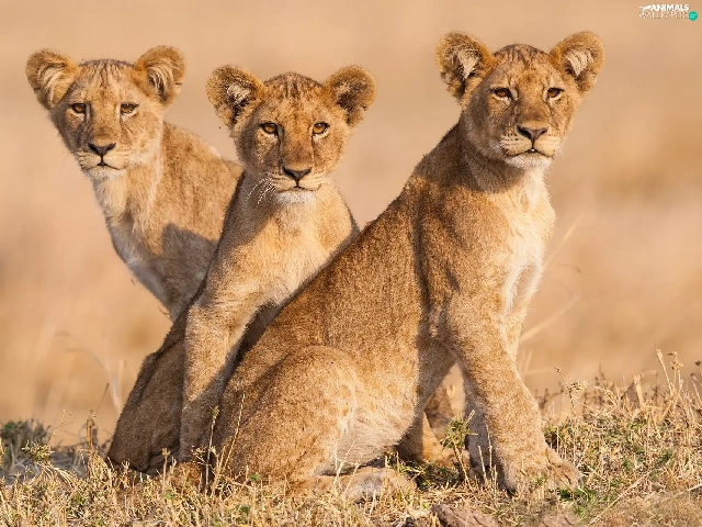 Three, lions, tigers, young
