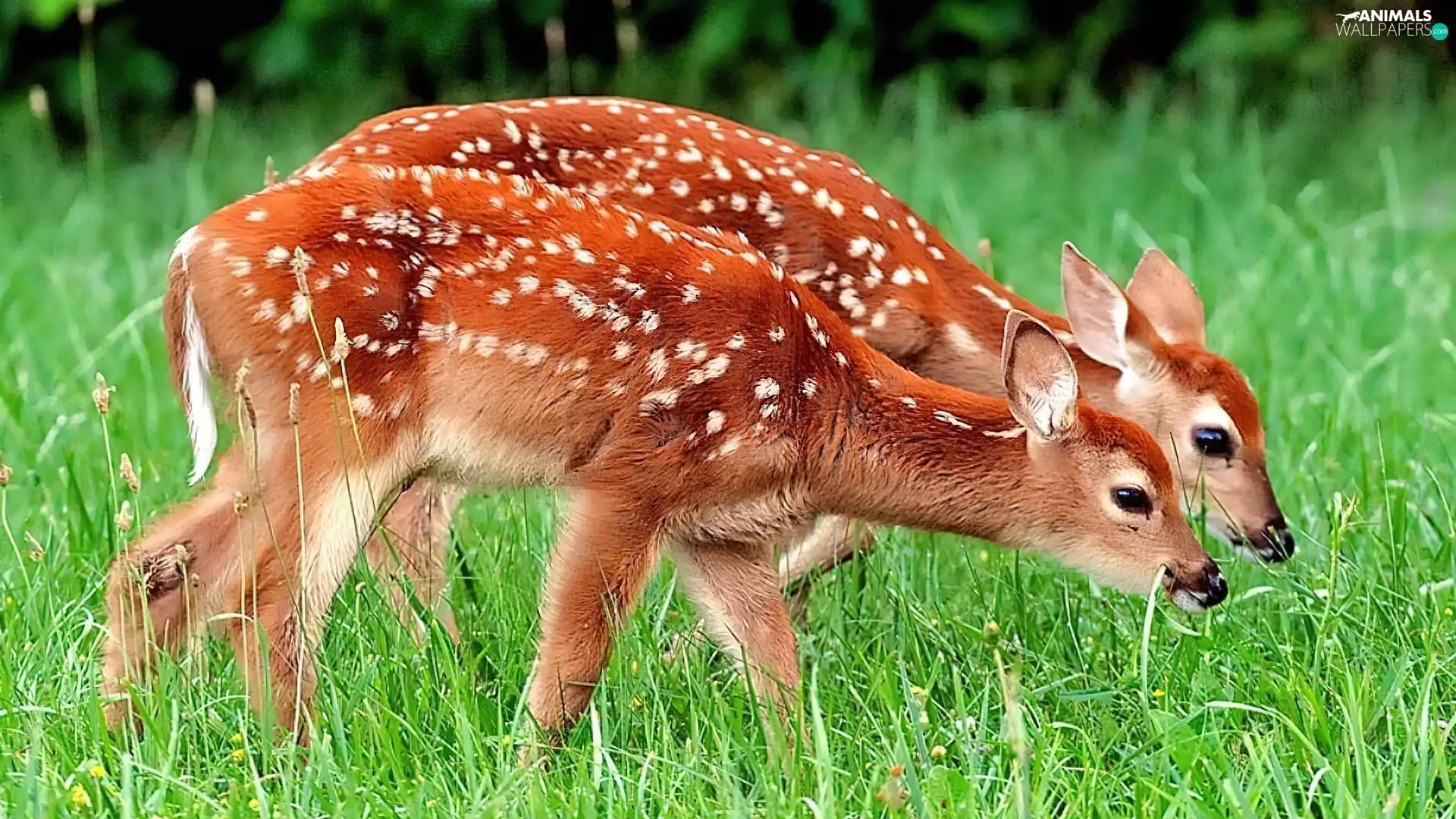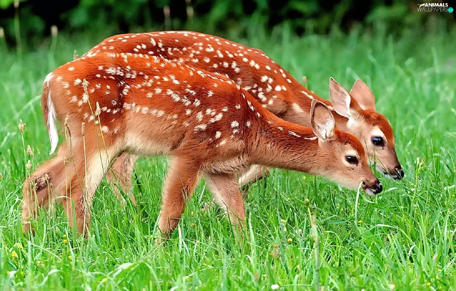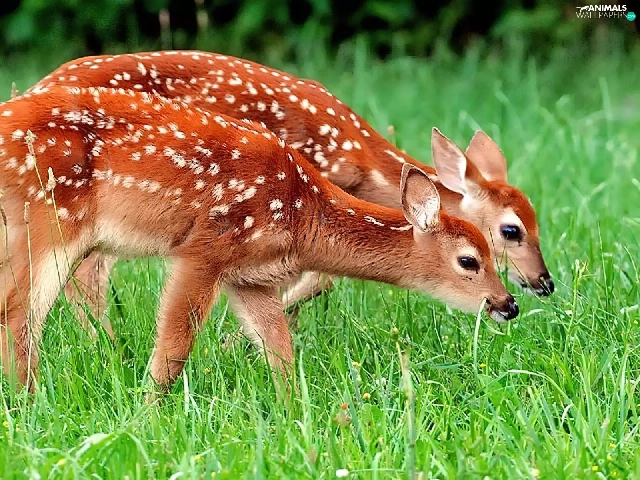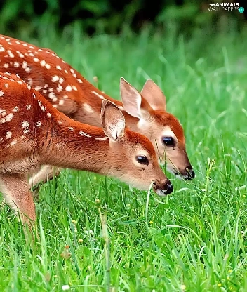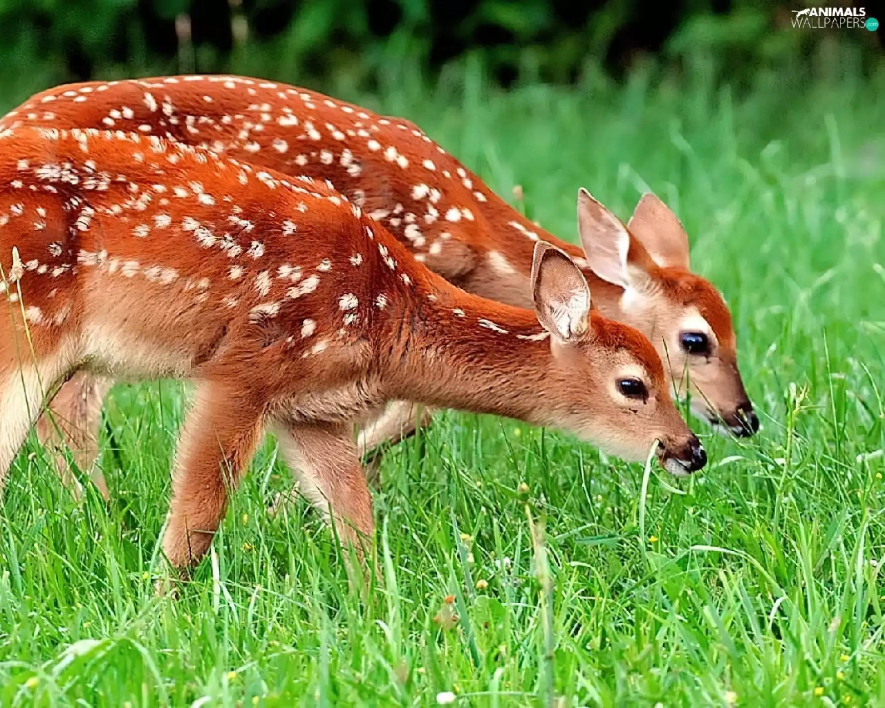 Two, deer, grass, young
