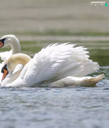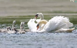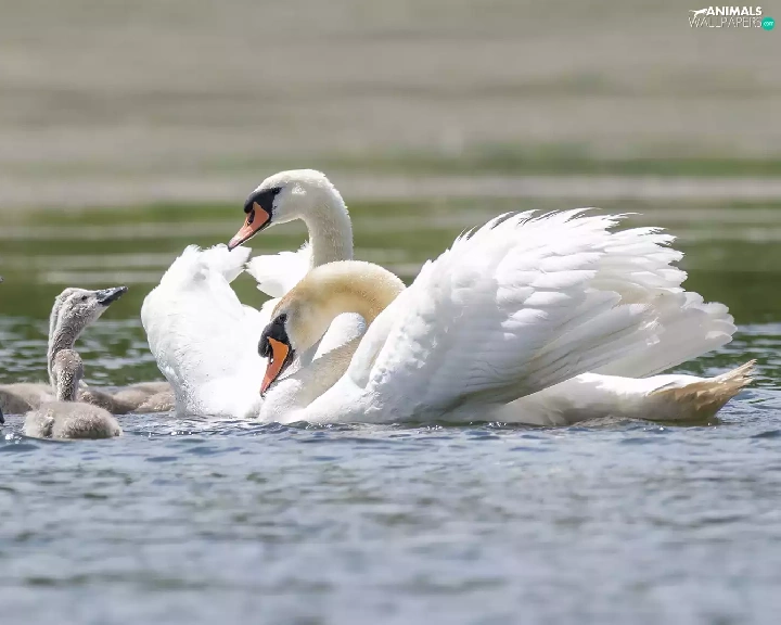 Family, young, White, Swan, birds