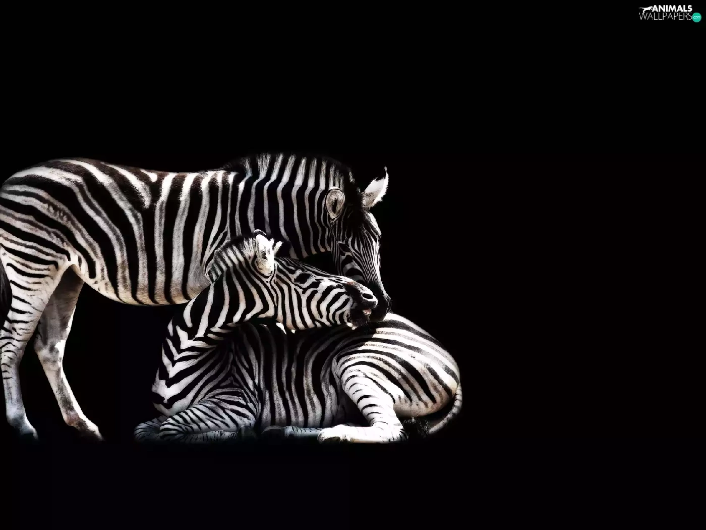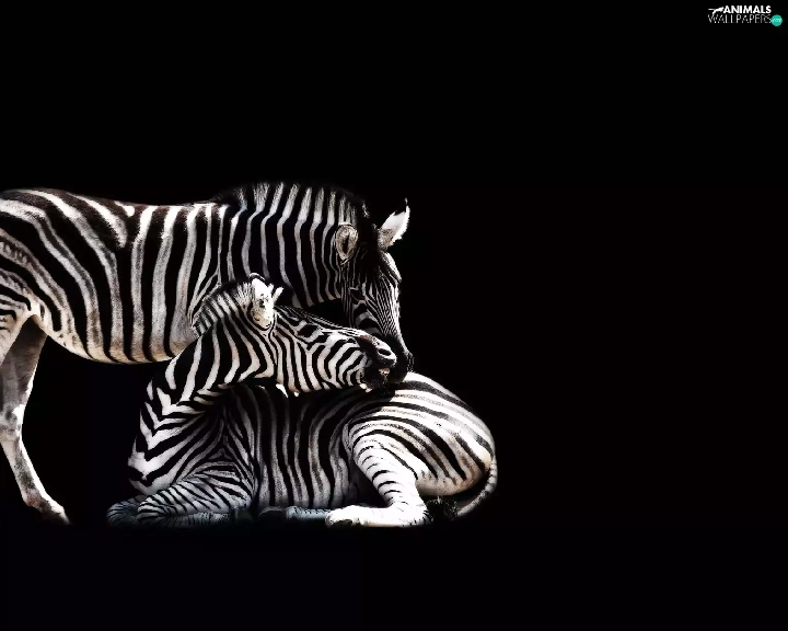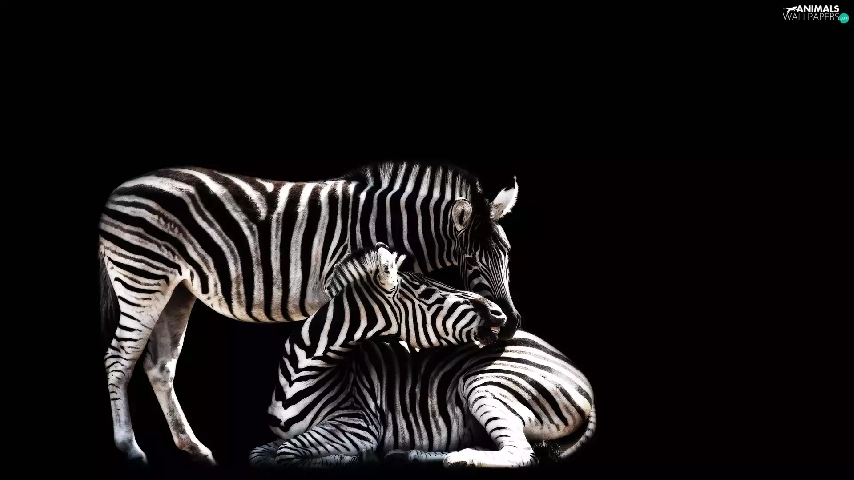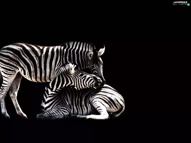 black background, Two, zebra