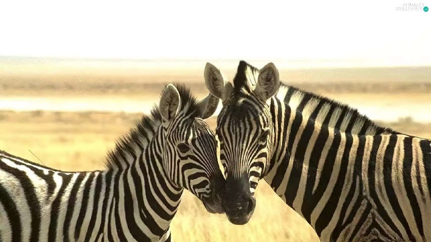 zebra, grass, Two