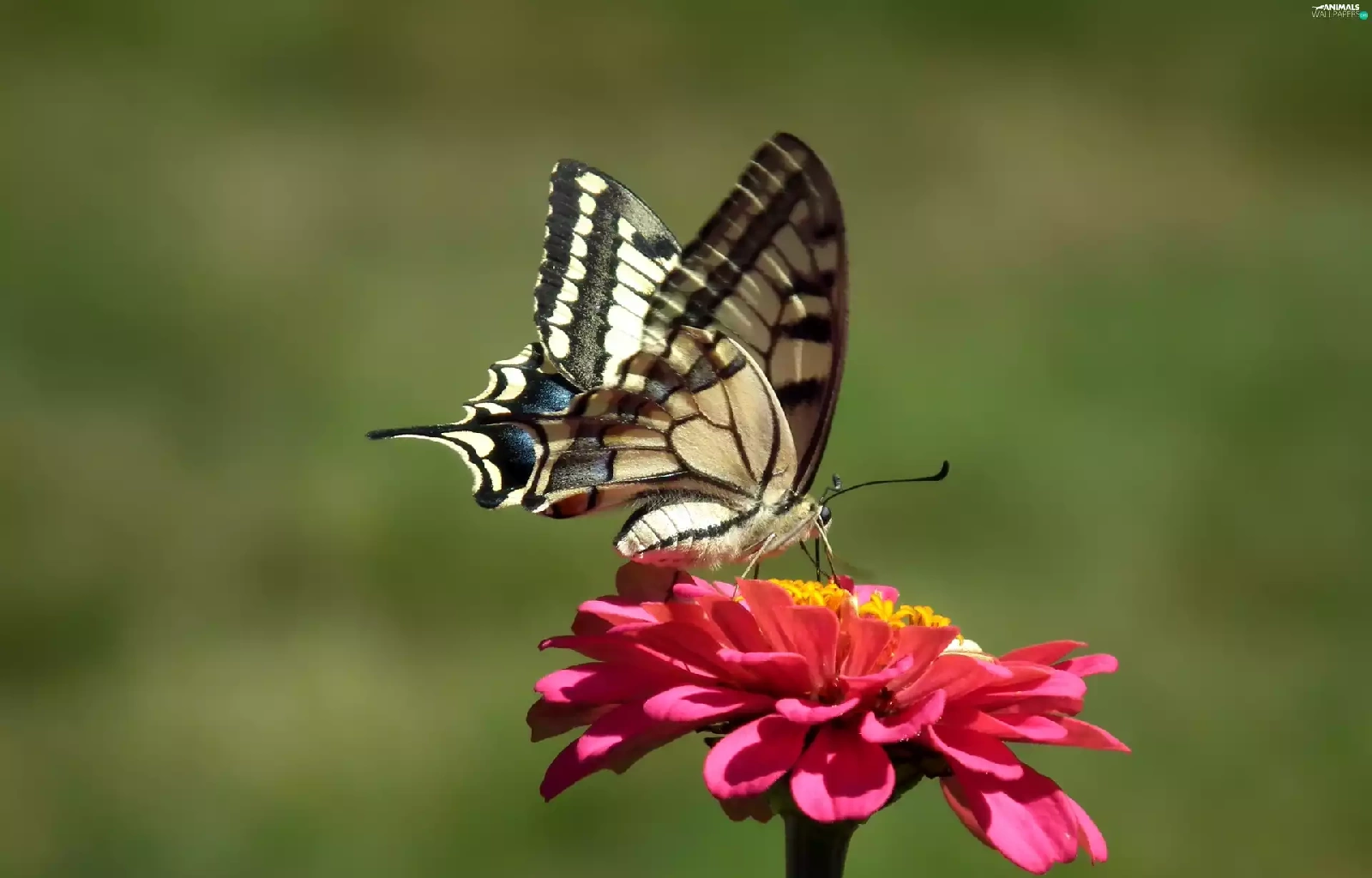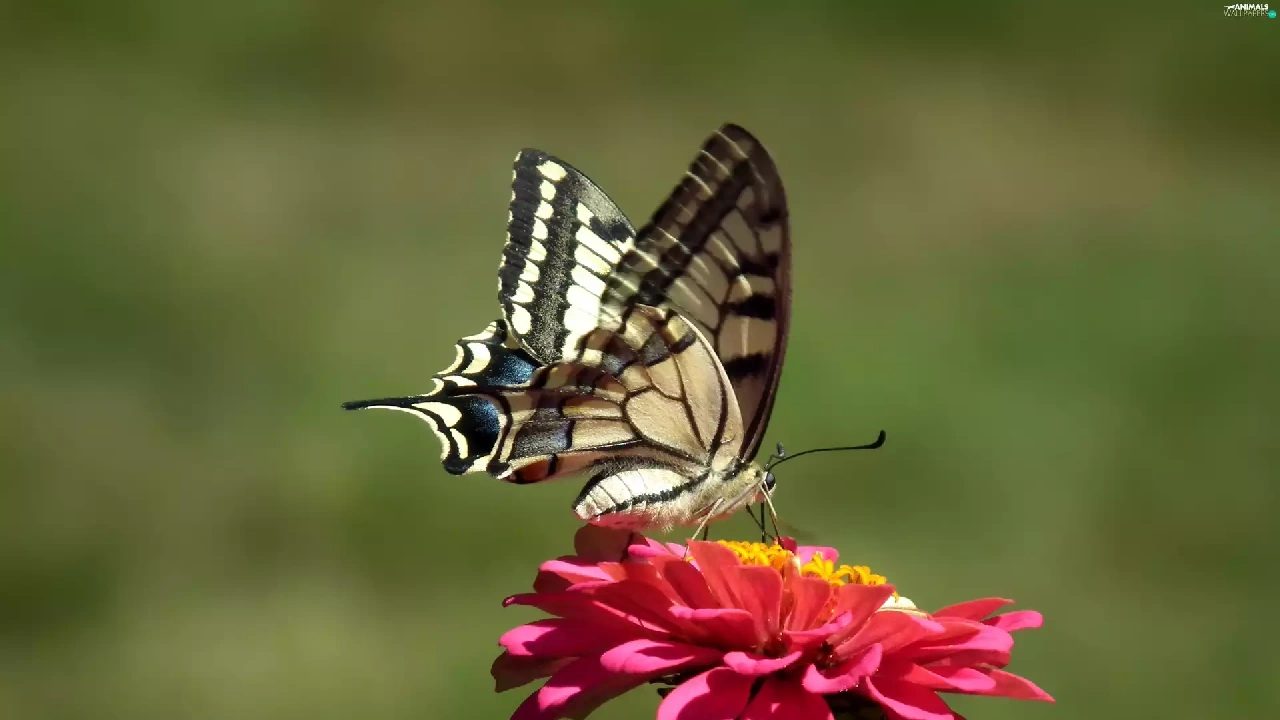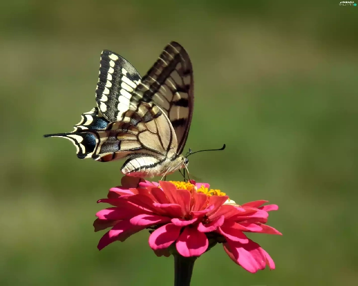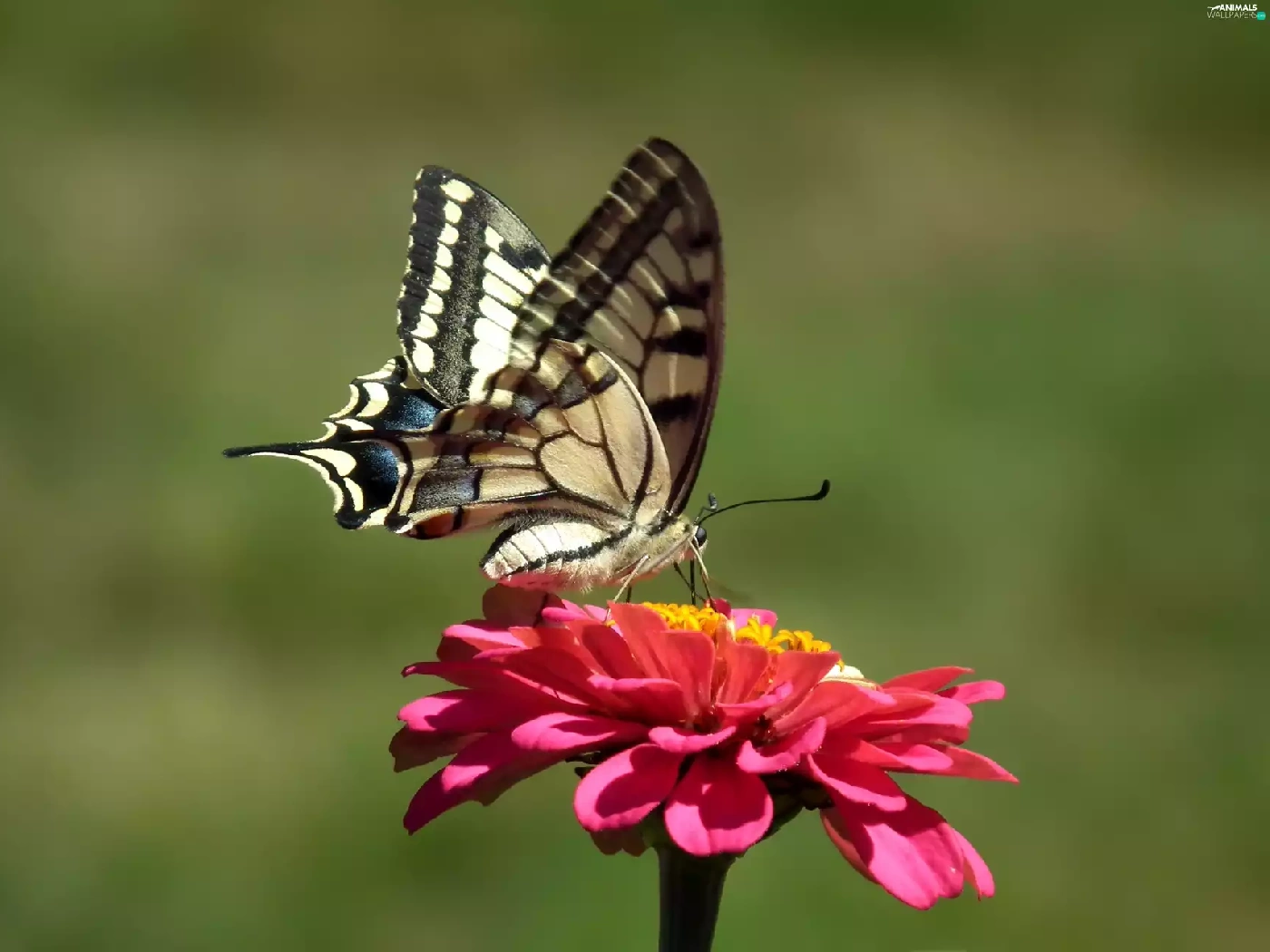 butterfly, Colourfull Flowers, zinnia, Swallowtail Butterfly