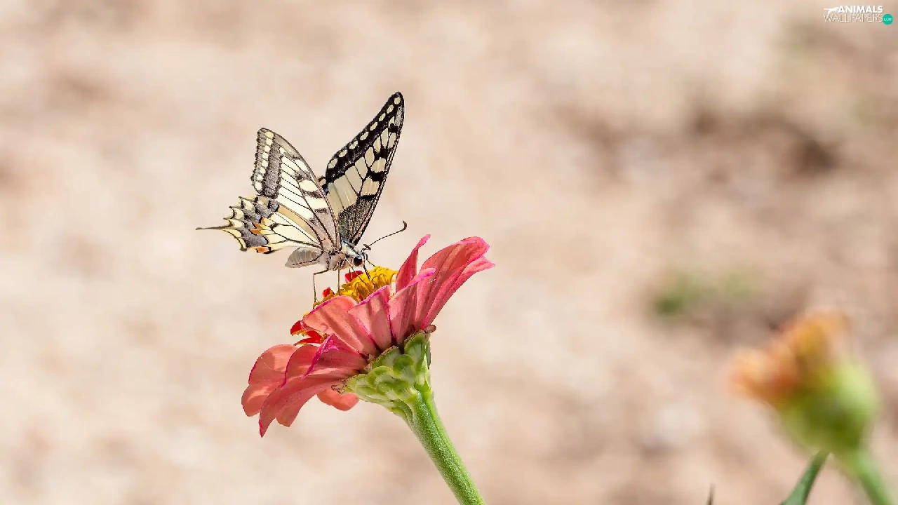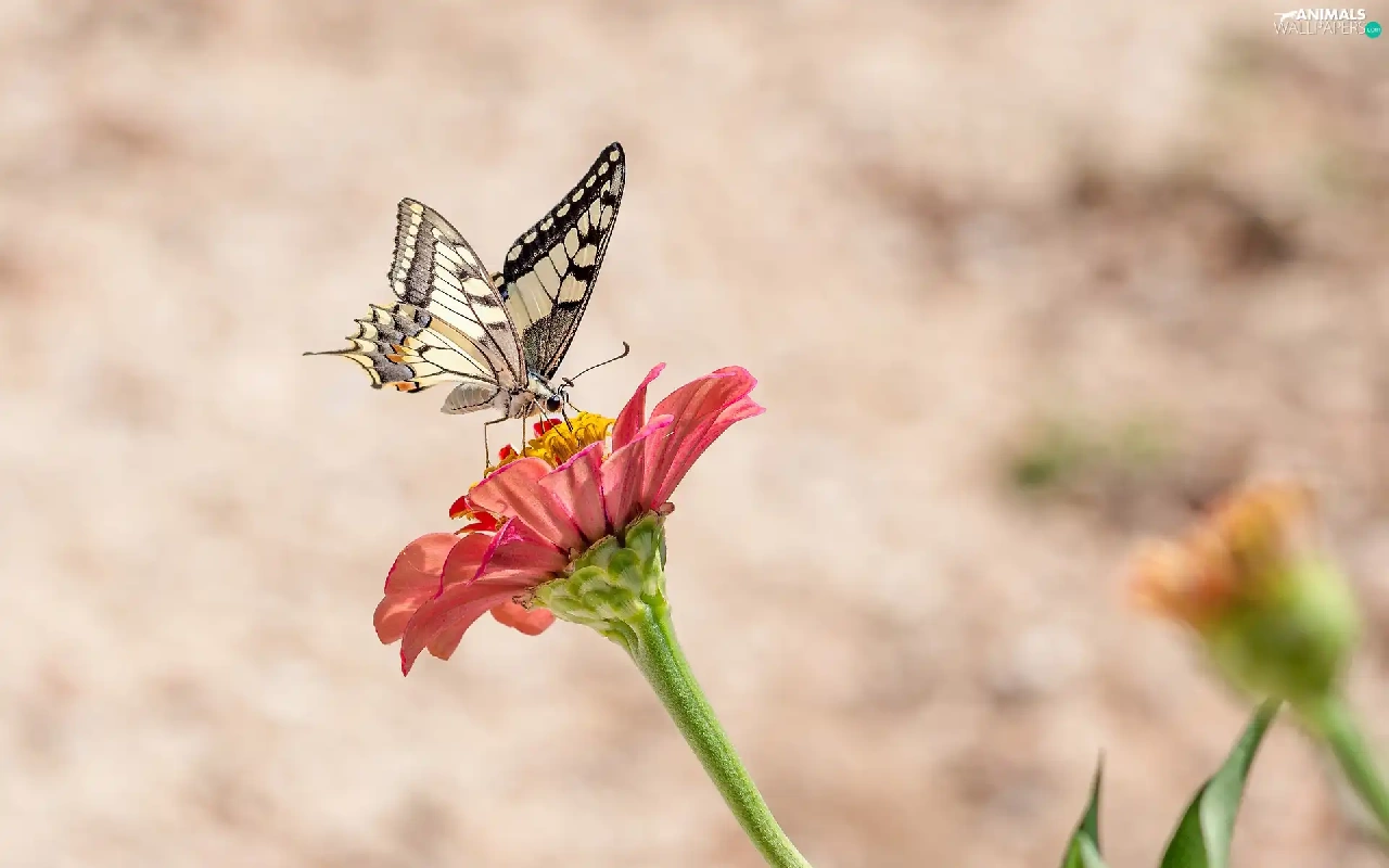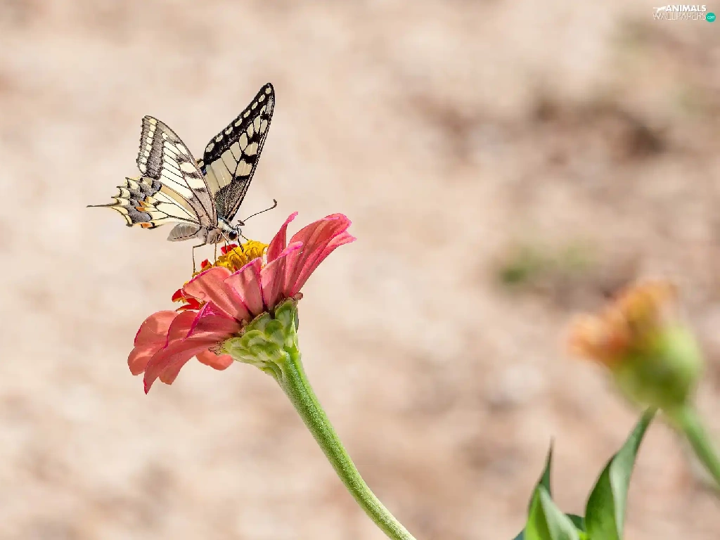 butterfly, Colourfull Flowers, zinnia, Oct Queen