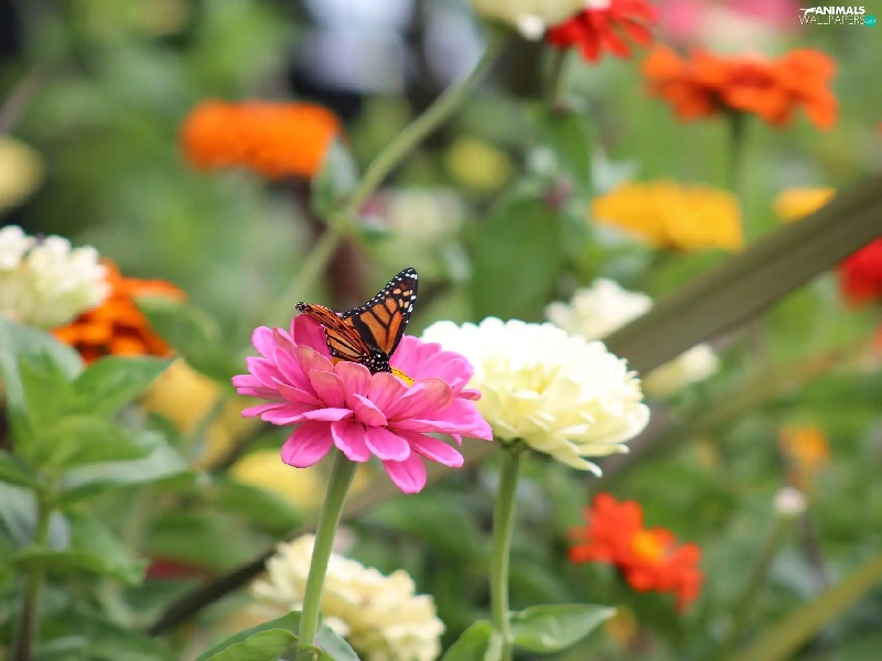 monarch, Monarch Butterfly, Zinnias, butterfly, Flowers